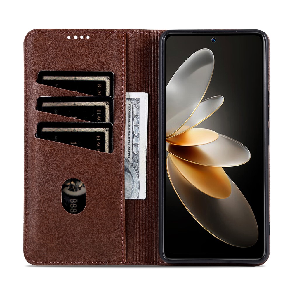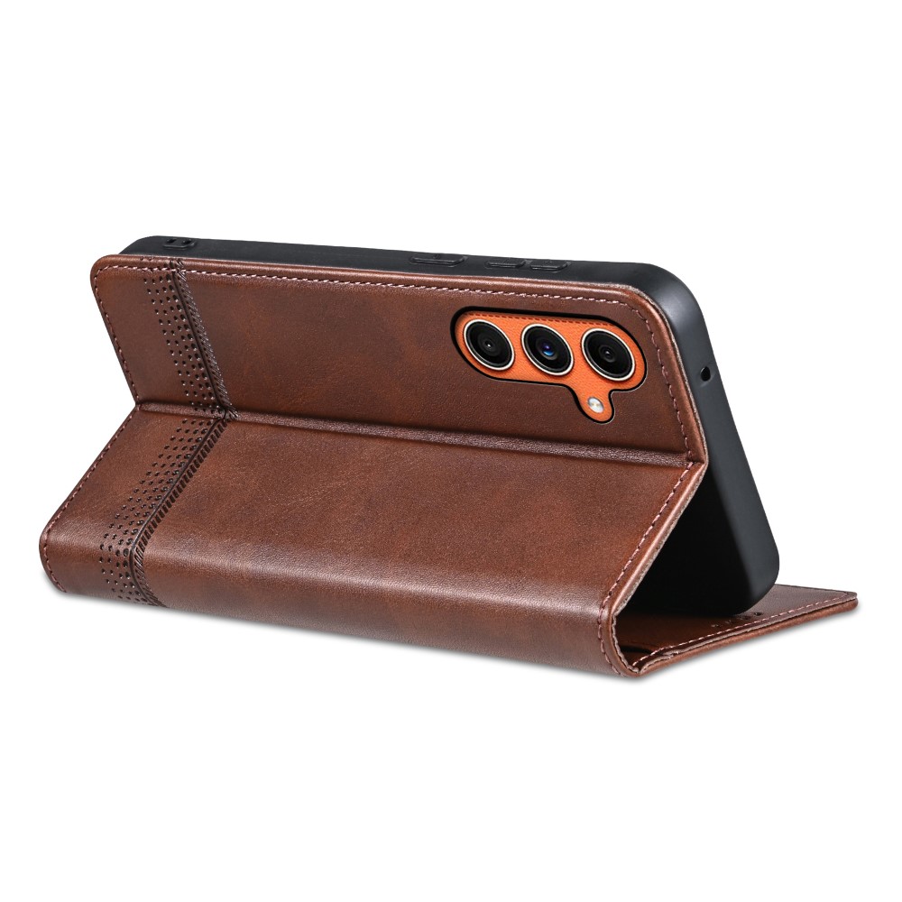 Θήκη Samsung Galaxy M55 5G AZNS Litchi Retro V4 Texture Leather με βάση στήριξης, υποδοχές καρτών και μαγνητικό κούμπωμα καφέ