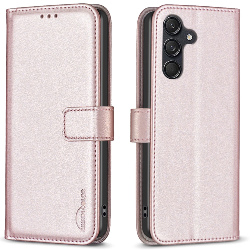 Θήκη Samsung Galaxy M55 5G BINFEN COLOR Leather Wallet Series 12 με βάση στήριξης, υποδοχές καρτών και μαγνητικό κούμπωμα – ροζ χρυσό