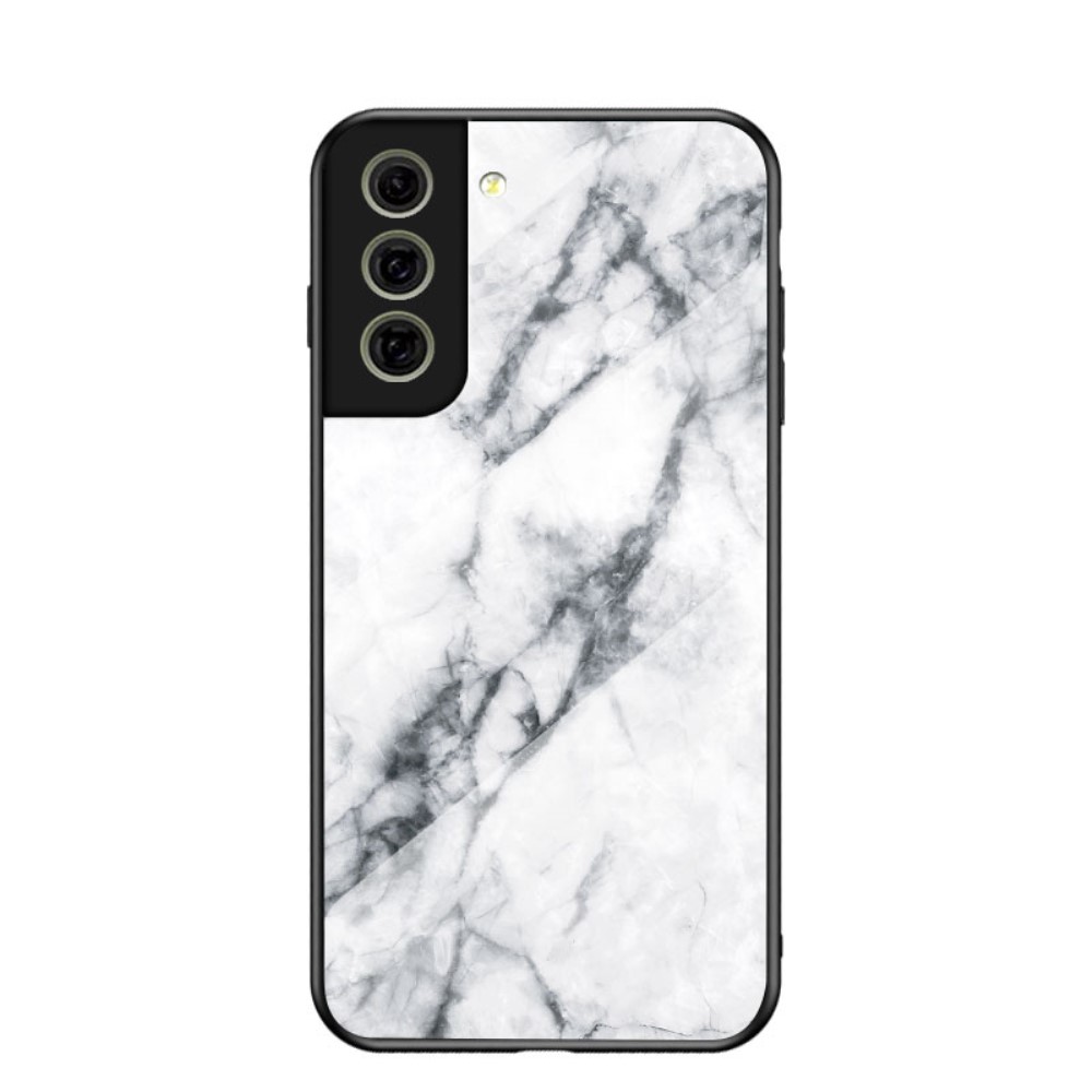 Θήκη Samsung Galaxy S21 FE OEM σχέδιο Marble με Πλάτη Tempered Glass TPU λευκό