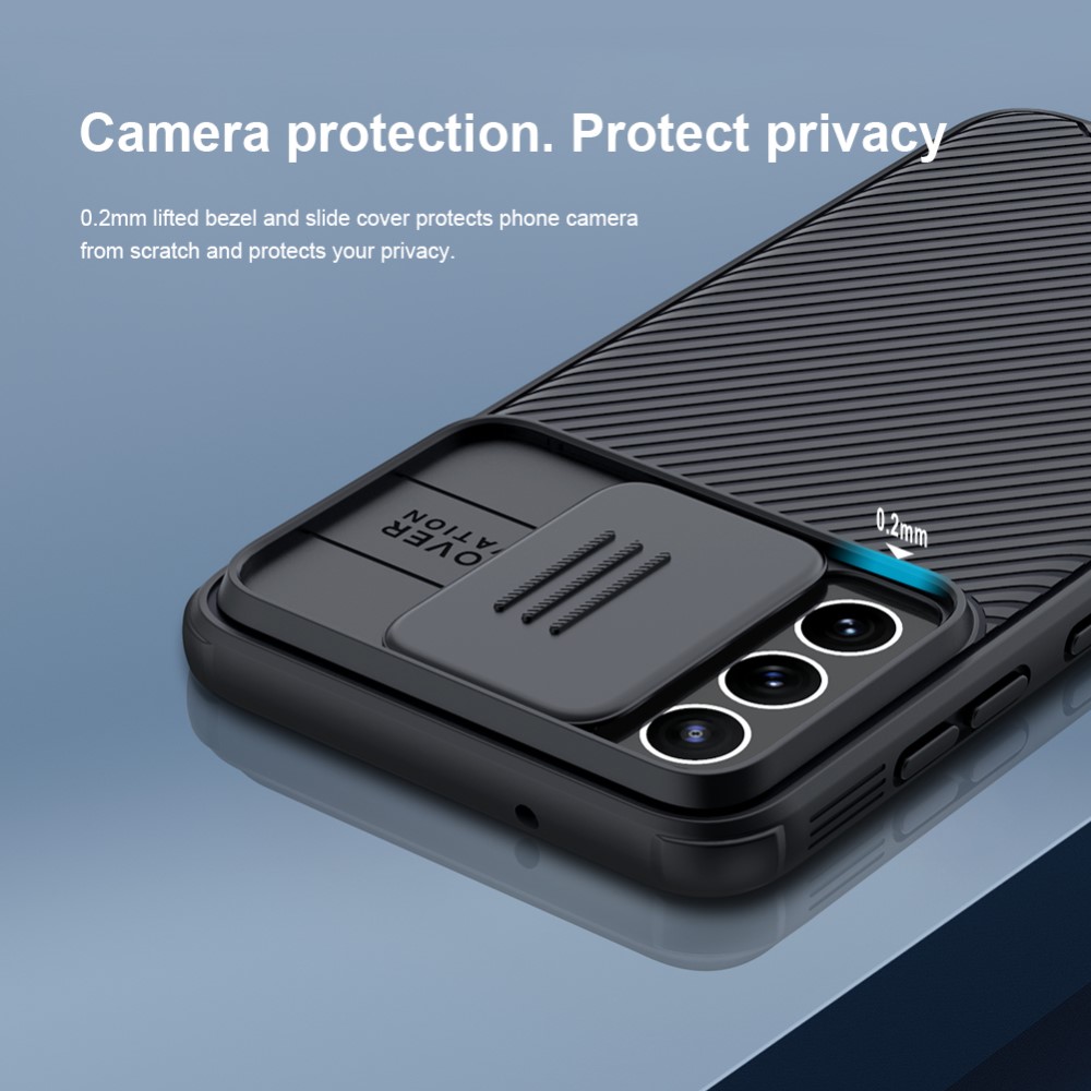 Θήκη Samsung Galaxy S21 FE NiLLkin Camshield Pro Series Πλάτη με προστασία για την κάμερα από σκλήρό Premium TPU μαύρο