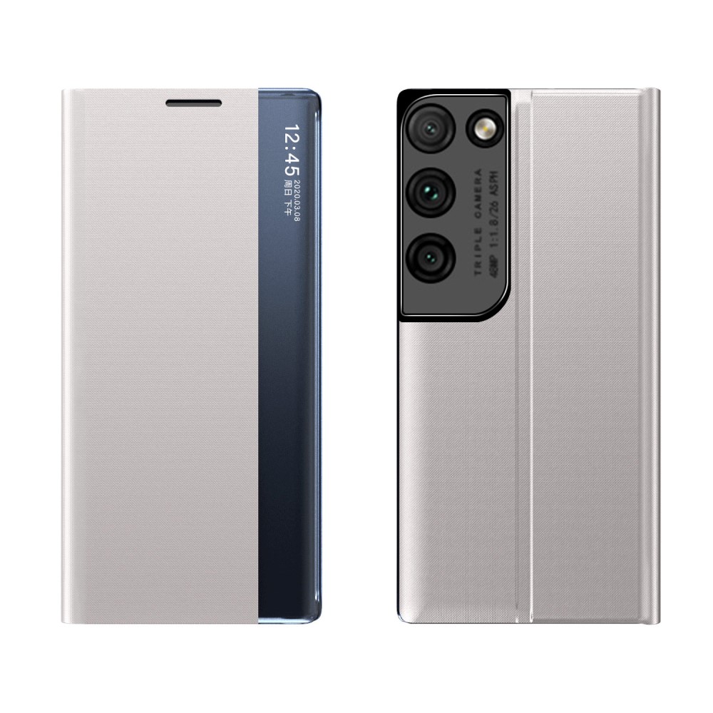 Θήκη Samsung Galaxy S21 Ultra OEM Half Mirror View Stand Cover με μαγνητικό κούμπωμα από συνθετικό δέρμα γκρι
