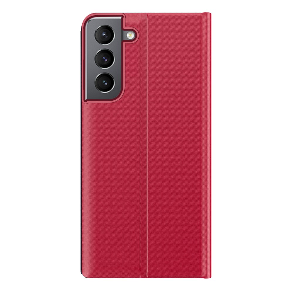 Θήκη Samsung Galaxy S22 5G OEM Half Mirror View Stand Cover με μαγνητικό κούμπωμα από συνθετικό δέρμα κόκκινο