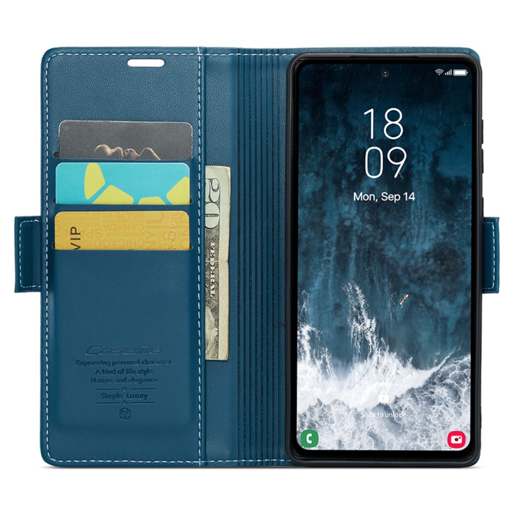 Θήκη Samsung Galaxy S23 FE 5G CaseMe 023 Series Πορτοφόλι με βάση στήριξης, υποδοχές καρτών και μαγνητικό κούμπωμα από συνθετικό δέρμα και TPU μπλε