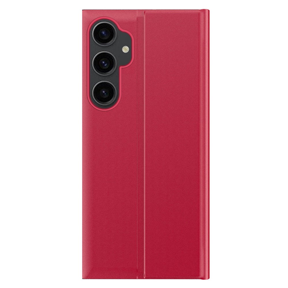Θήκη Samsung Galaxy S23 FE 5G OEM Half Mirror View Stand Cover με μαγνητικό κούμπωμα από συνθετικό δέρμα κόκκινο