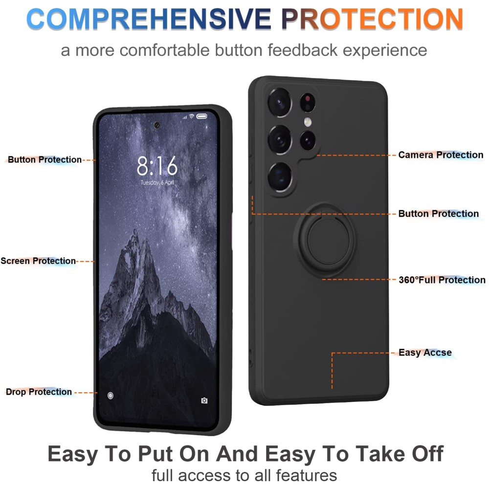 Η θήκη παρέχει ανθεκτική προστασία χωρίς να προσθέτει περιττό όγκο, διατηρώντας το Samsung Galaxy S23 Ultra σας ασφαλές από γρατσουνιές και καθημερινή φθορά. Το δαχτυλίδι στήριξης προσφέρει βελτιωμένη λαβή, μειώνοντας τον κίνδυνο πτώσης.