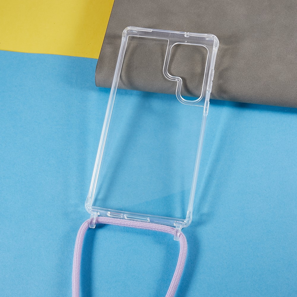 Θήκη Samsung Galaxy S23 Ultra Mad Mask Hybrid Sockproof Transparent V3 πλάτη με κορδόνι από αντικραδασμικό TPU μωβ