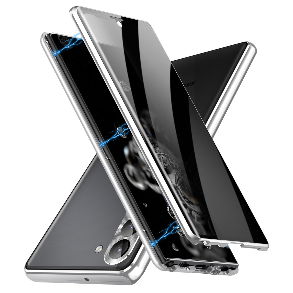 Θήκη Samsung Galaxy S24 5G Mad Mask Metal Frame Series με μαγνητικό μεταλλικό πλαίσιο και διπλό Anti-Spy Φιμέ Tempered Glass για προστασία 360° μοιρών ασημί