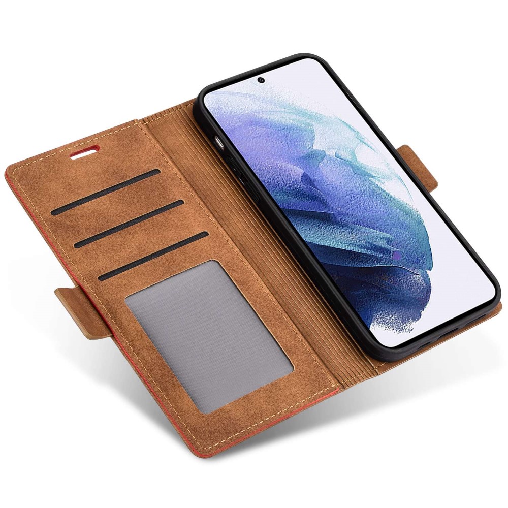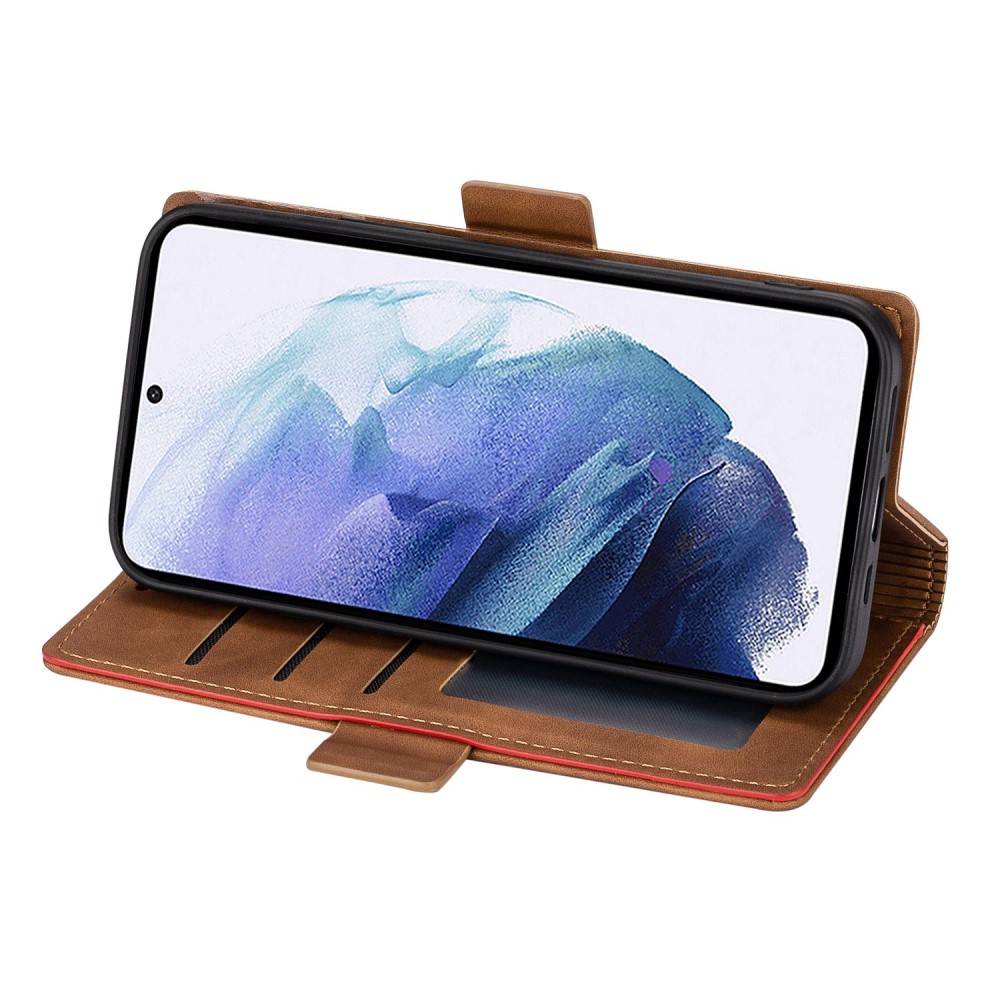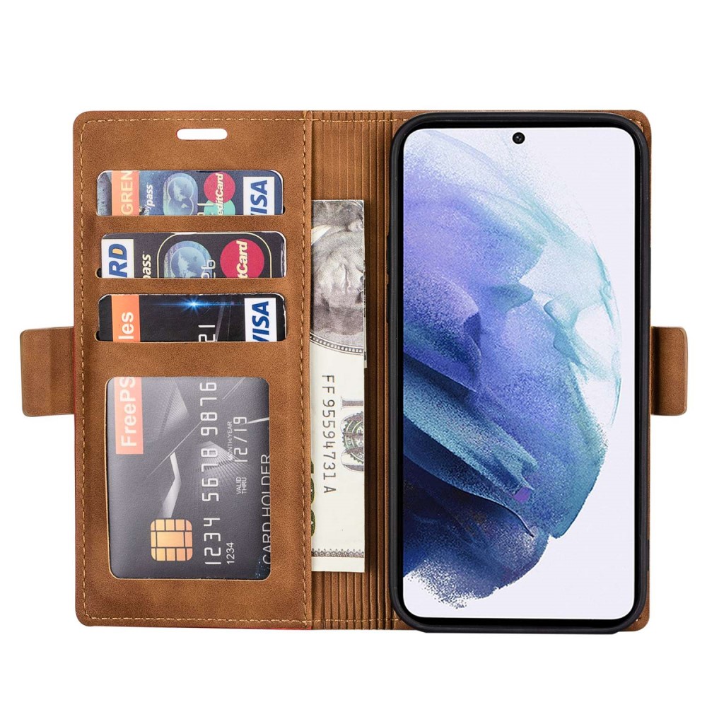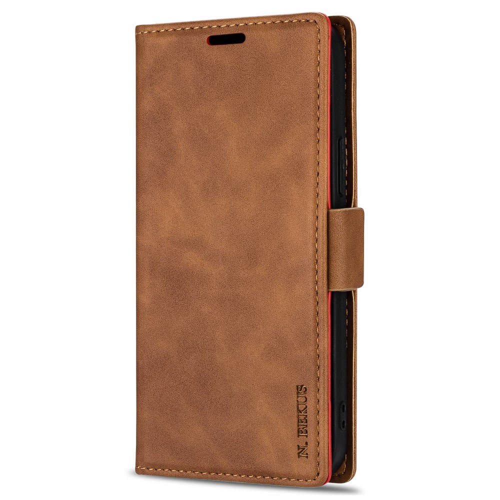 Θήκη Samsung Galaxy S24 5G N.BEKUS Litchi Retro Texture Leather με βάση στήριξης, υποδοχές καρτών και μαγνητικό κούμπωμα καφέ