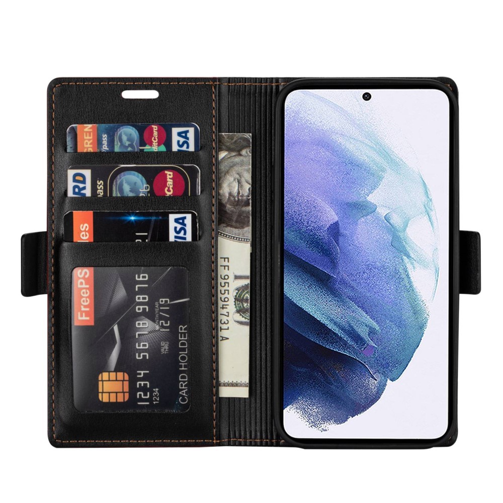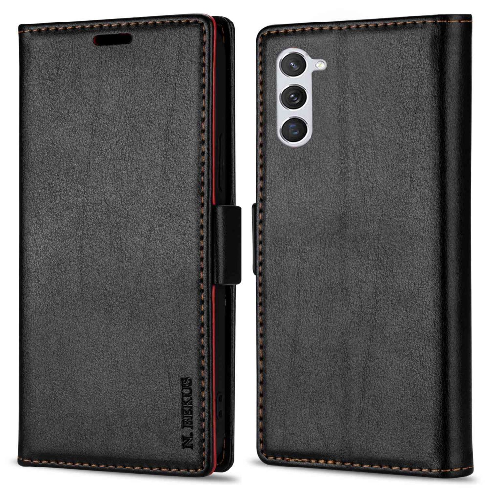 Θήκη Samsung Galaxy S24 5G N.BEKUS Litchi Retro Texture Leather με βάση στήριξης, υποδοχές καρτών και μαγνητικό κούμπωμα μαύρο