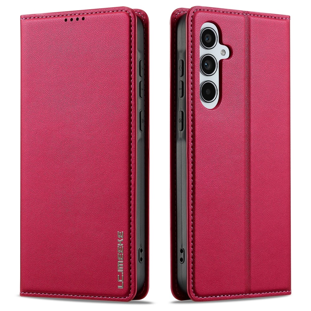 Θήκη Samsung Galaxy S24 FE 5G LC.IMEEKE PU Leather Series V2 με βάση στήριξης, υποδοχές καρτών και μαγνητικό κούμπωμα κόκκινο