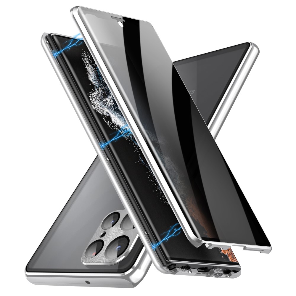 Θήκη Samsung Galaxy S24 Ultra 5G Mad Mask Metal Frame Series με μαγνητικό μεταλλικό πλαίσιο και διπλό Anti-Spy Φιμέ Tempered Glass για προστασία 360° μοιρών ασημί