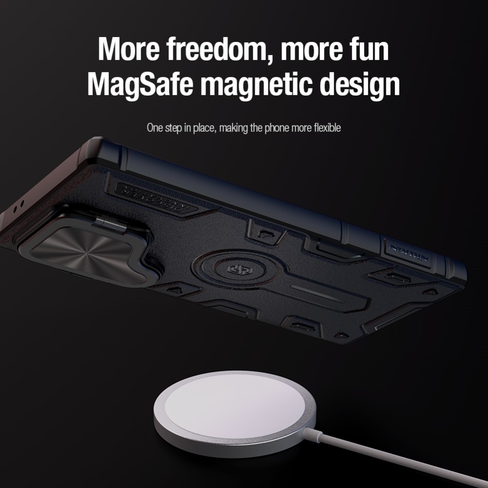 Θήκη Samsung Galaxy S24 Ultra 5G NiLLkin Camshield Armor Prop Magnetic Series με προστασία για την κάμερα και βάση στήριξης MagSafe από σκλήρό Premium TPU μαύρο