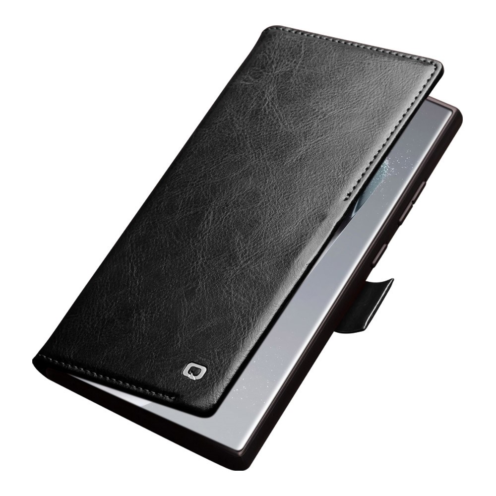 Θήκη Samsung Galaxy S24 Ultra 5G QIALINO book v3 με μαγνητικό κούμπωμα από Premium αυθεντικό δέρμα Genuine Cowhide μαύρο