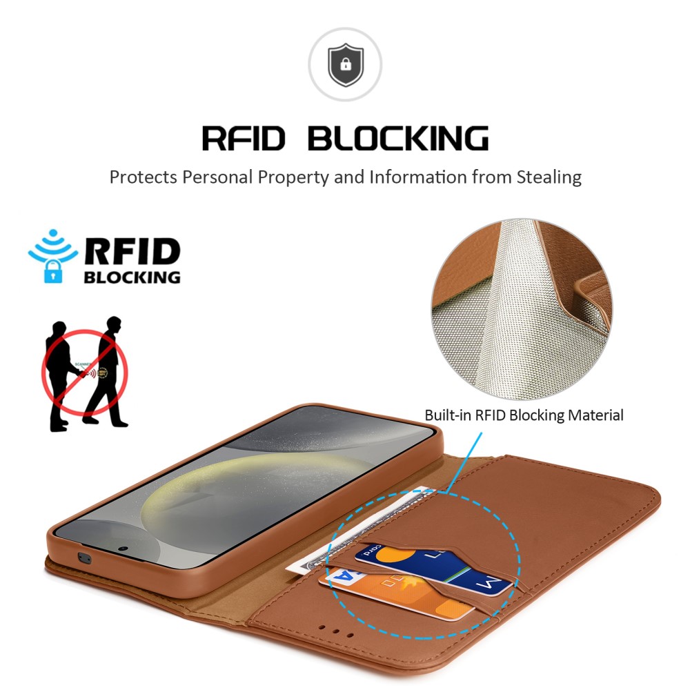 Θήκη Samsung Galaxy S25 5G DUX DUCIS Hivo Series με RFID Blocking, βάση στήριξης, υποδοχές καρτών με μαγνητικό κλείσιμο Flip Wallet από αυθεντικό δέρμα και TPU καφέ
