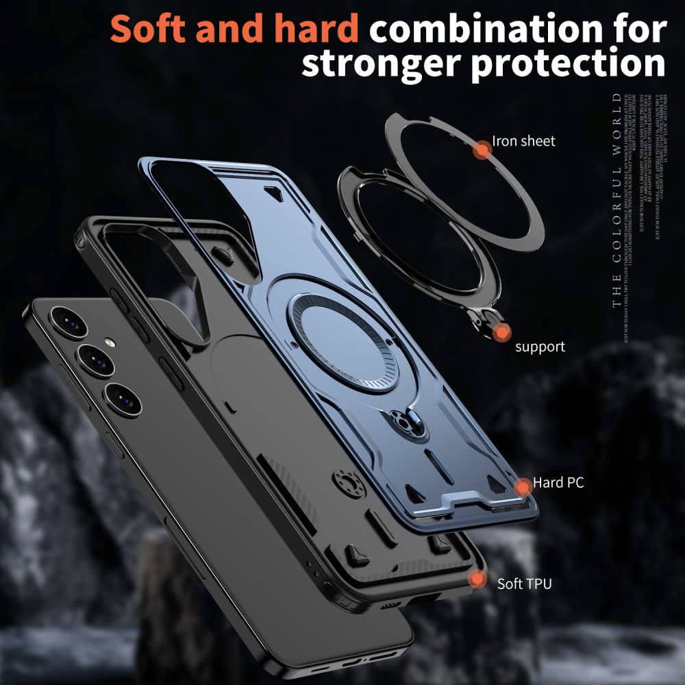 Θήκη Samsung Galaxy S25 Plus 5G / S24 Plus 5G Mad Mask Πλάτη Military Protection με Μαγνητικό δαχτυλίδι ,συμβατό με ασύρματη φόρτιση Magsafe και Βάση στήριξης TPU μπλε