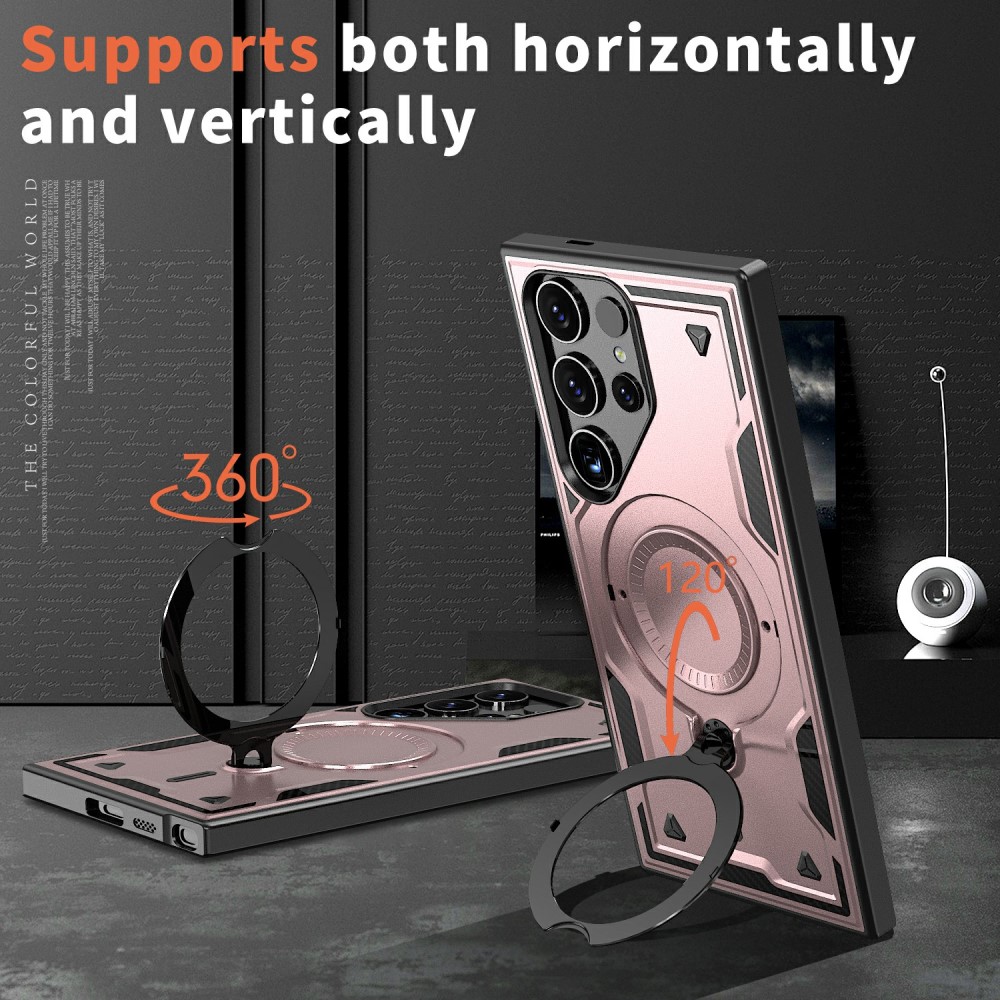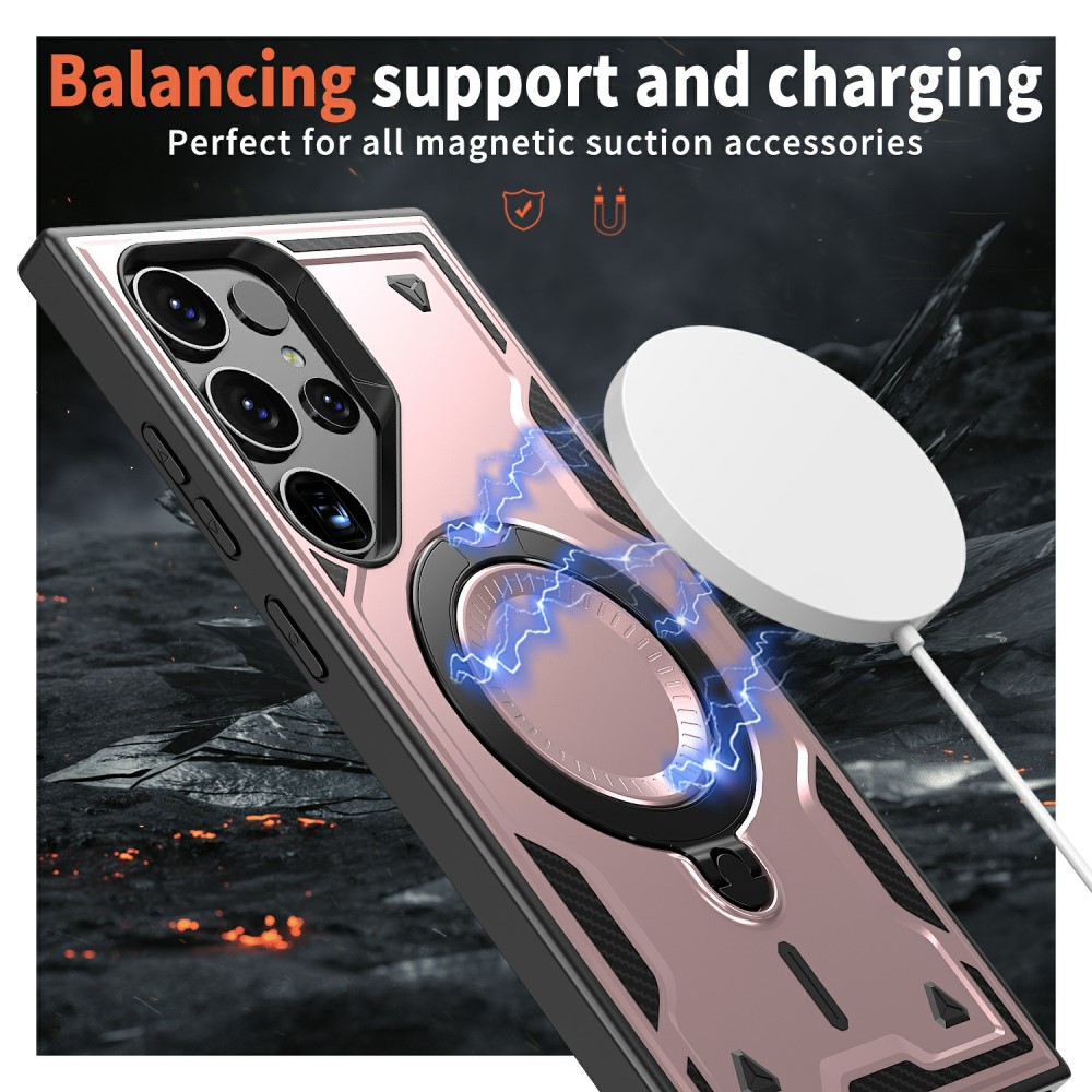 Θήκη Samsung Galaxy S25 Ultra 5G Mad Mask Πλάτη Military Protection με Μαγνητικό δαχτυλίδι ,συμβατό με ασύρματη φόρτιση Magsafe και Βάση στήριξης TPU ροζ χρυσό