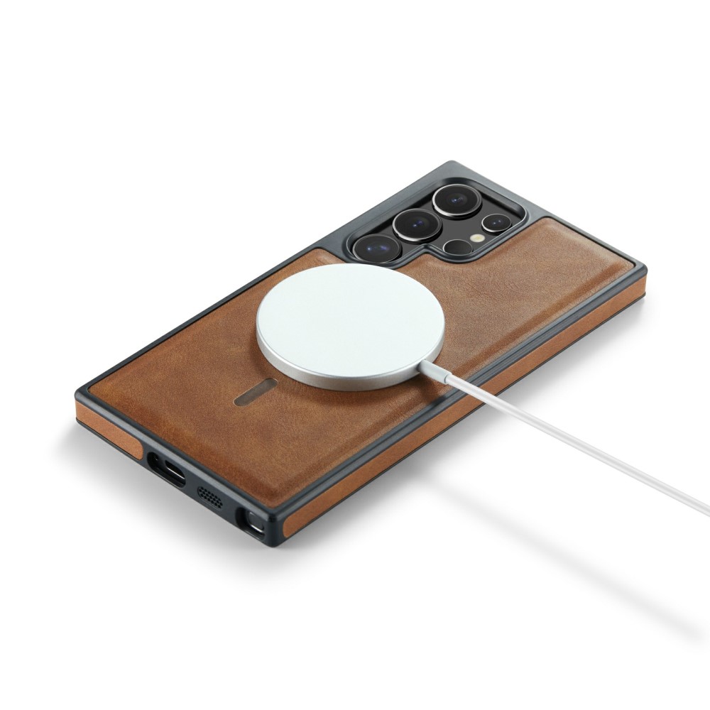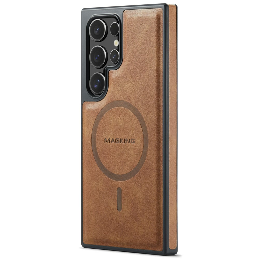 Θήκη Samsung Galaxy S25 Ultra 5G MAGKING PU Leather Sockproof Series Πλάτη από σκληρό πλαστικό ,συμβατό με magsafe φορτιστή και επένδυση δερματίνης καφέ