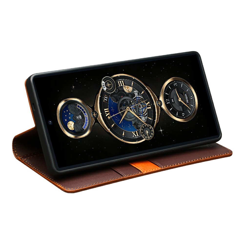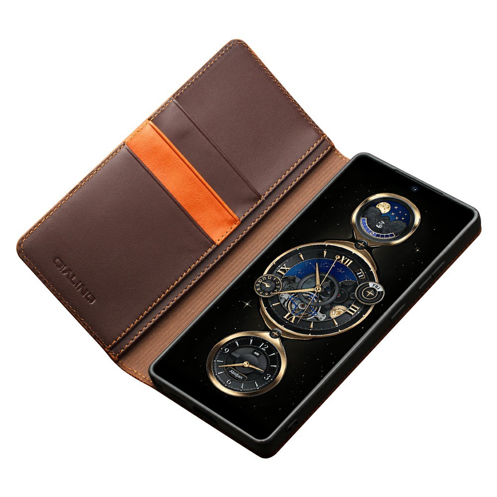 Θήκη Samsung Galaxy S25 Ultra 5G QIALINO book v2 από Premium αυθεντικό δέρμα Genuine Cowhide καφέ σκούρο