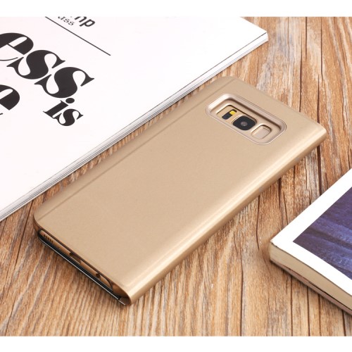 Θήκη SAMSUNG Galaxy S8 OEM Clear View & Mirror Surface με βάση στήριξης Flip Window δερματίνη χρυσό