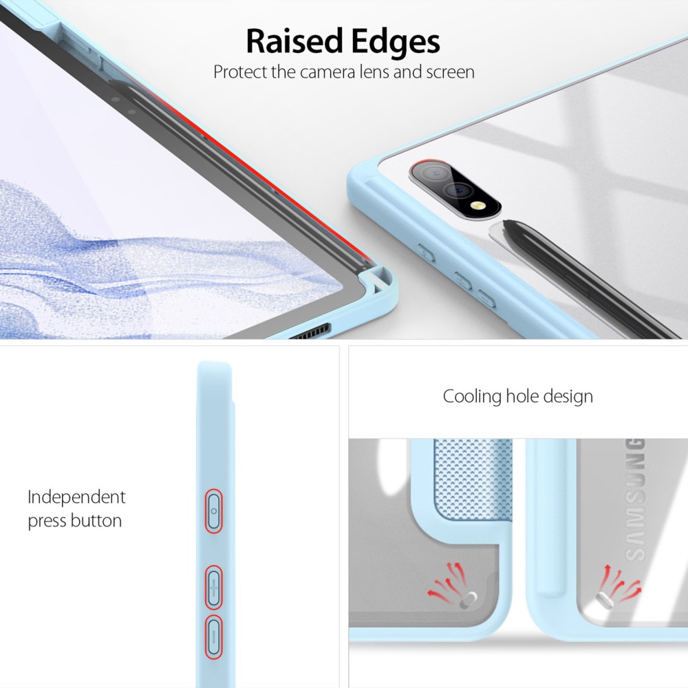 Θήκη Tablet για DUX DUCIS TOBY Series Samsung Galaxy Tab S9+ / S10+ 12.4″, Συνθετικό Δέρμα, Flip Cover, Tri-Fold Stand, Auto Wake/Sleep, με Θήκη για Στυλό, Γαλάζιο