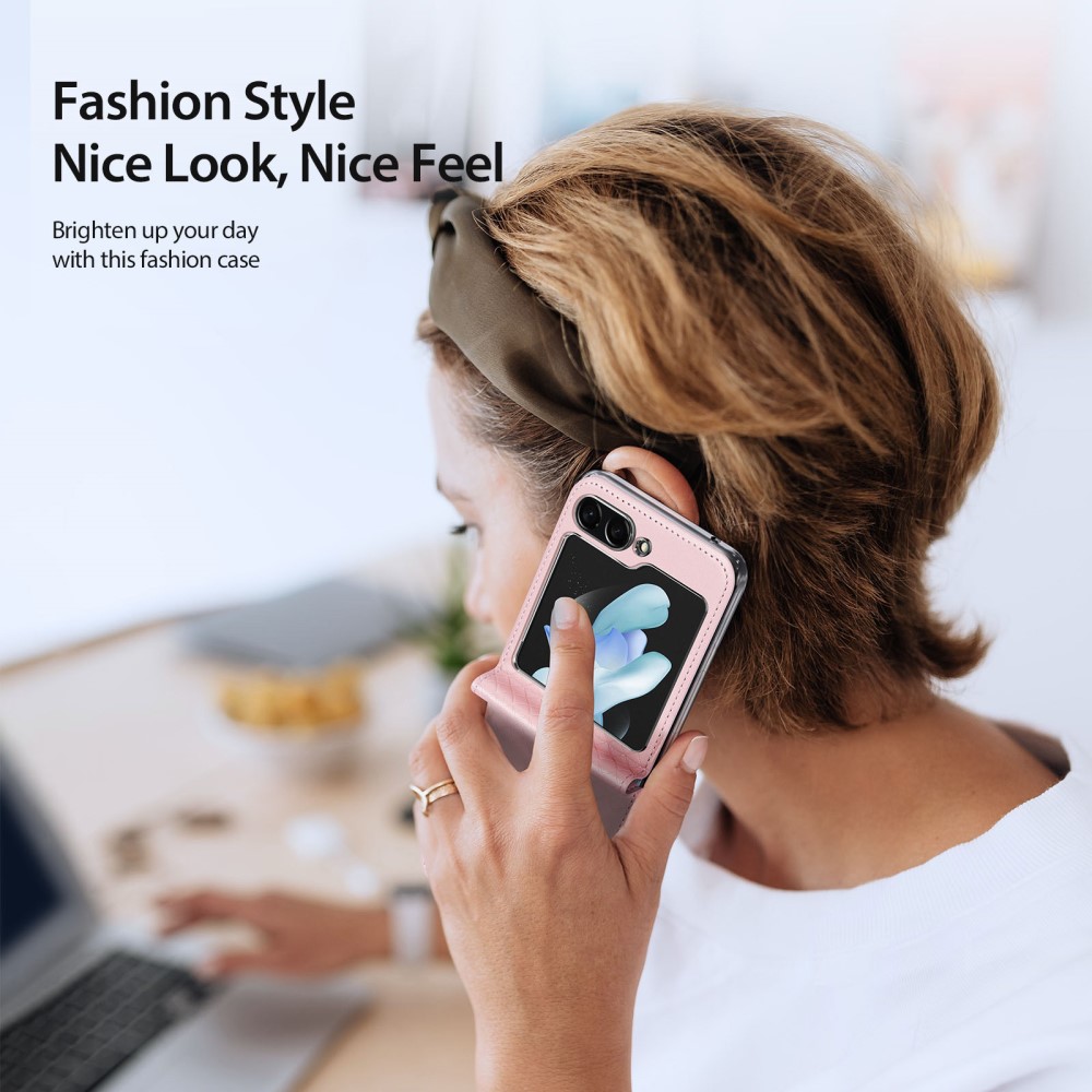 Θήκη Samsung Galaxy Z Flip5 5G DUX DUCIS Bril Series Leather Coated συμβατό με MagSafe φορτιστή Πλάτη TPU ροζ