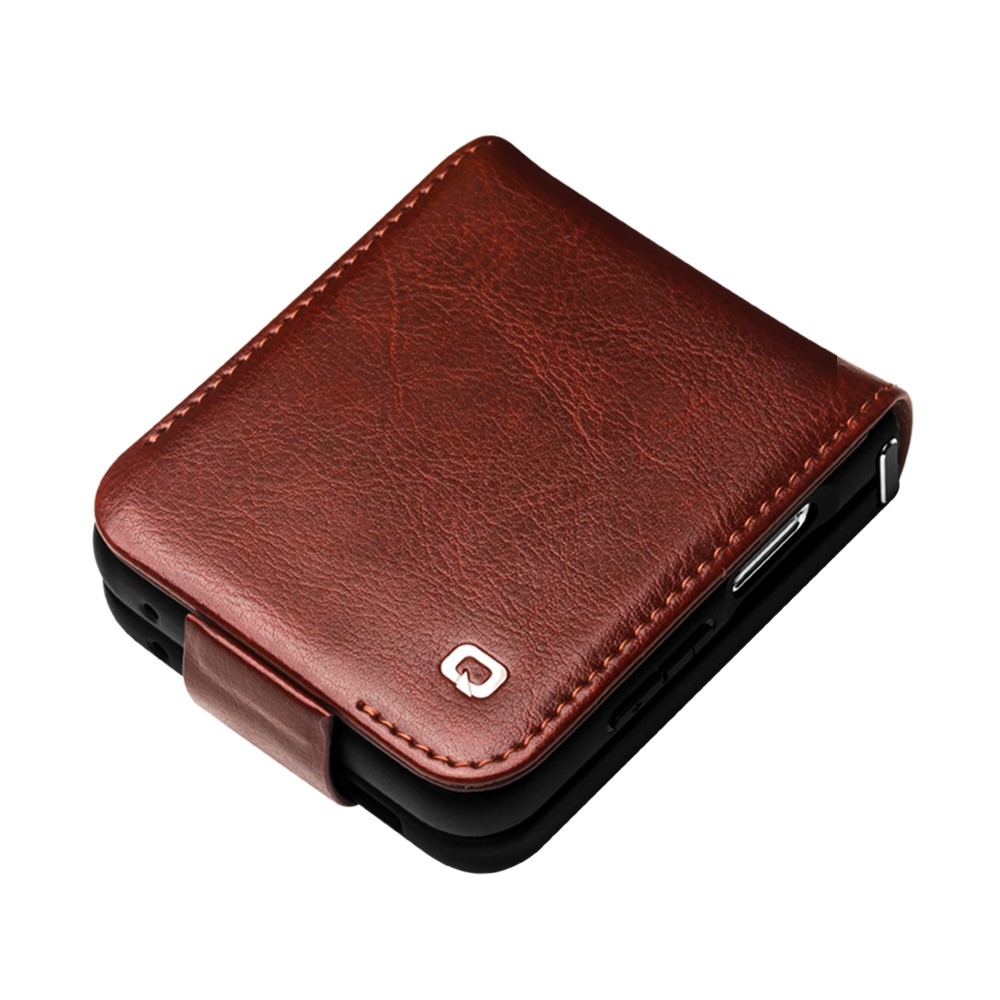 Θήκη Samsung Galaxy Z Flip5 5G QIALINO book v3 με μαγνητικό κούμπωμα από Premium αυθεντικό δέρμα Genuine Cowhide καφέ σκούρο