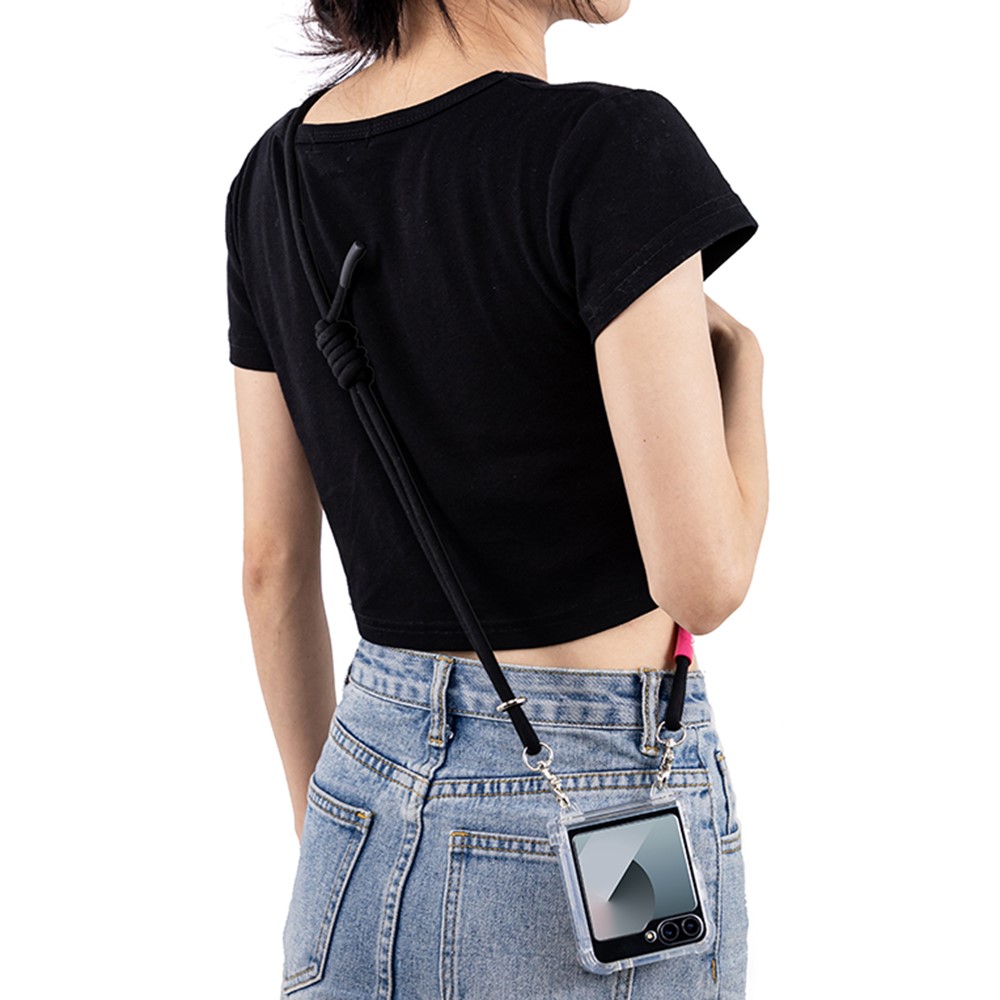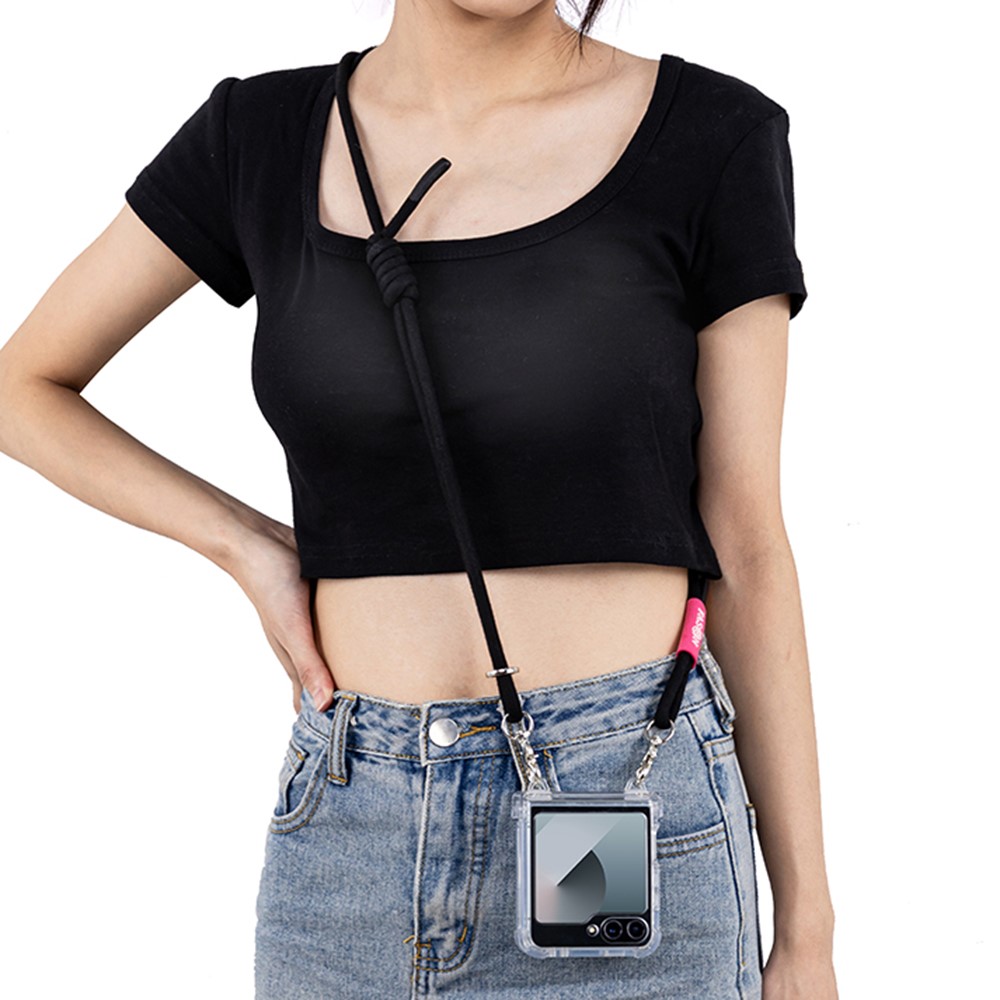 Θήκη Samsung Galaxy Z Flip6 5G / Z Flip7 FE 5G GKK Διάφανο Ανθεκτικό κάλυμμα με Προστασία Συστήματος Αναδίπλωσης, Μεταλλικό Δαχτυλίδι και Αποσπώμενο Λουρί Μεταφοράς μαύρο