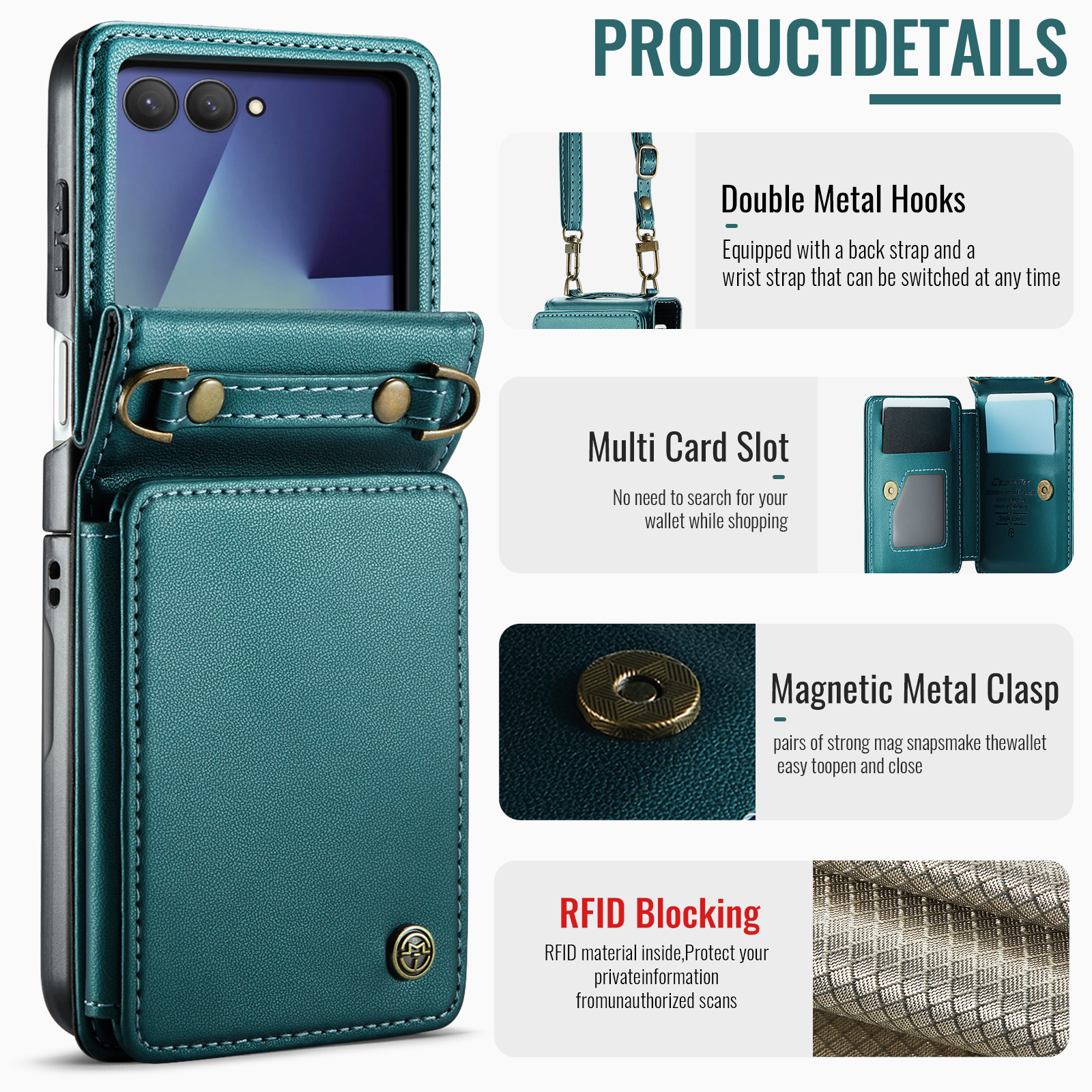 Θήκη Samsung Galaxy Z Flip7 5G CASEME C22 Series Πορτοφόλι με λουράκι, υποδοχές καρτών και μαγνητικό κούμπωμα από συνθετικό δέρμα και TPU πράσινο