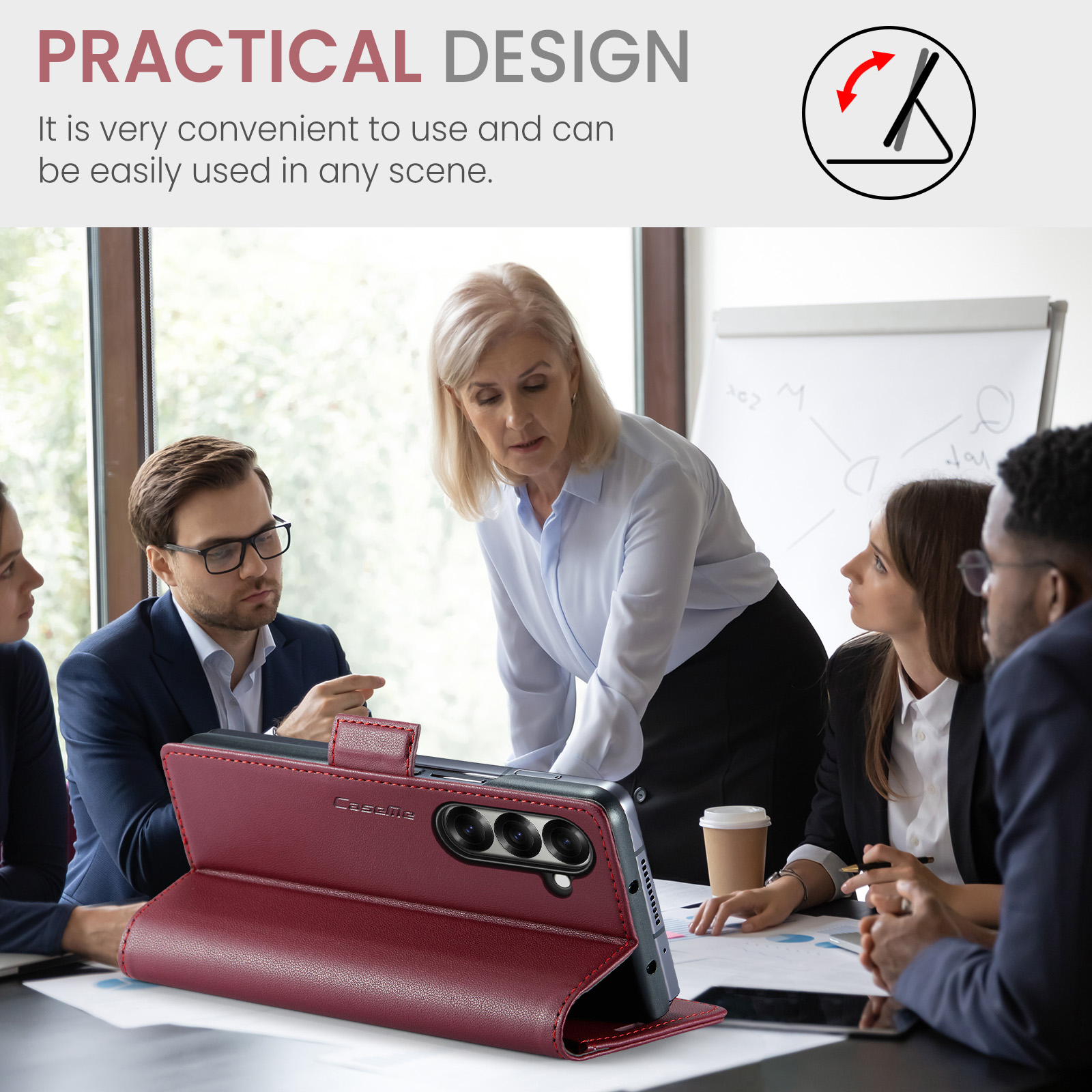 Θήκη Samsung Galaxy Z Fold7 5G CASEME 023 Series Πορτοφόλι με βάση στήριξης, υποδοχές καρτών και μαγνητικό κούμπωμα από συνθετικό δέρμα και TPU κόκκινο