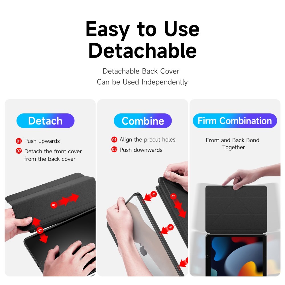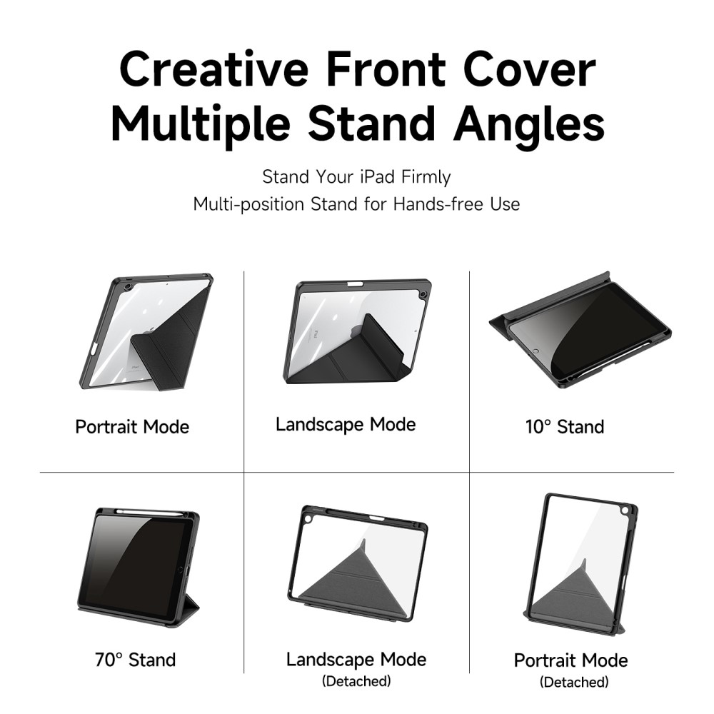 Θήκη Dux Ducis Magi Series Tri-Fold Flip Cover για iPad (2019/2020/2021) 10.2″ με πολλαπλές θέσεις στήριξης, ειδική θέση για πενάκι και διάφανη ενισχυμένη πλάτη σε χρώμα μαύρο