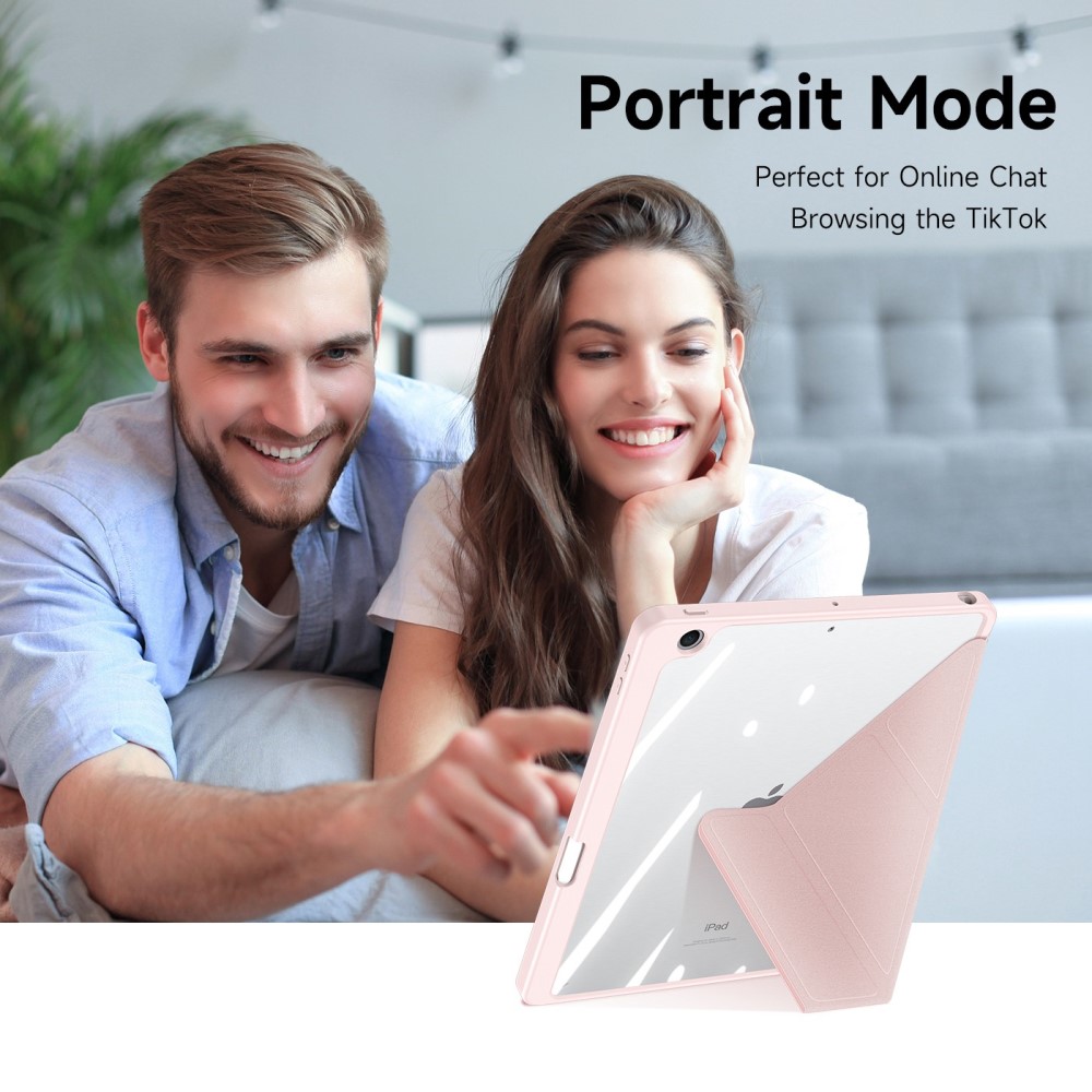 Θήκη Dux Ducis Magi Series Tri-Fold Flip Cover για iPad (2019/2020/2021) 10.2″ με πολλαπλές θέσεις στήριξης, ειδική θέση για πενάκι και διάφανη ενισχυμένη πλάτη σε χρώμα ροζ