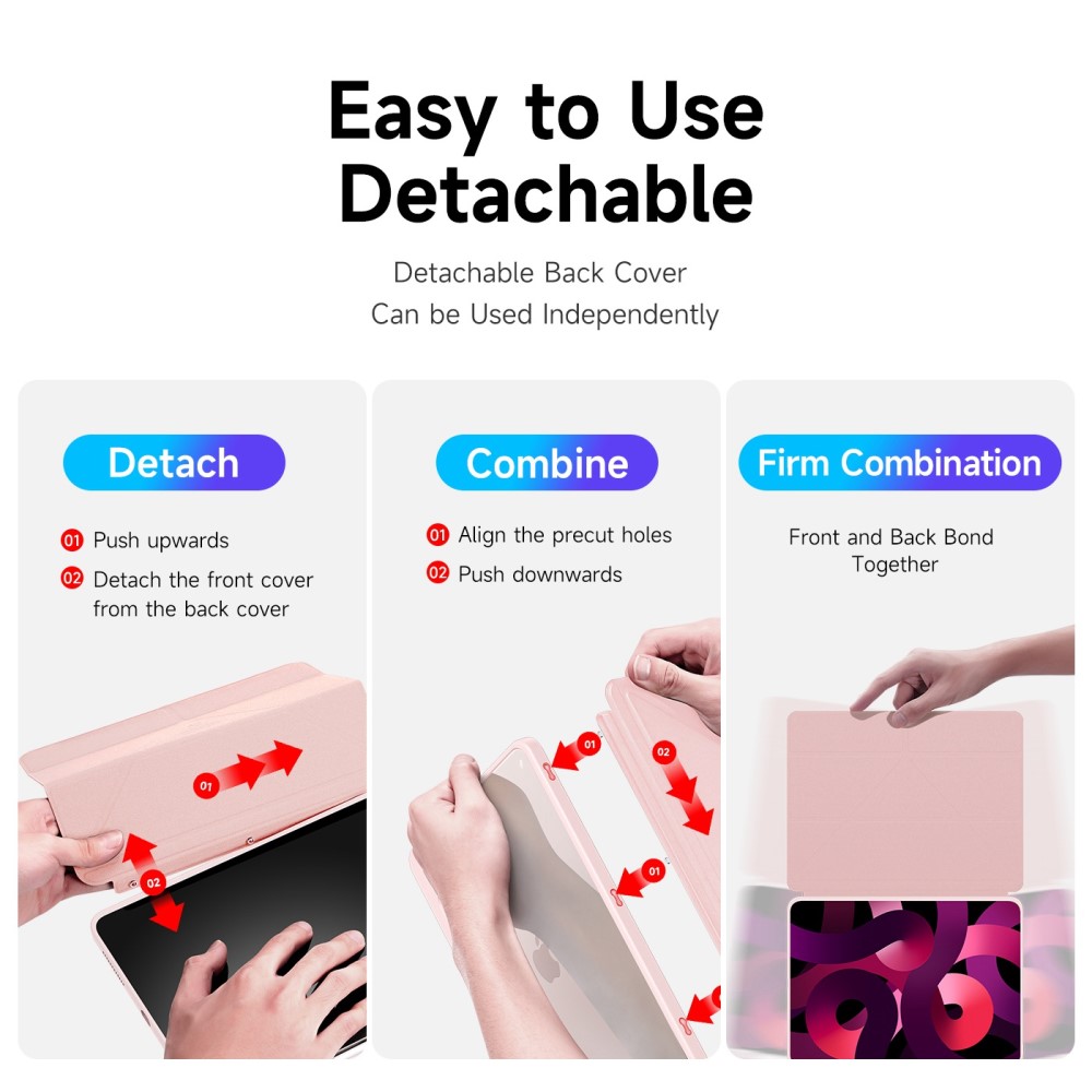 Θήκη Dux Ducis Magi Series Tri-Fold Flip Cover για iPad Air (2020/2022) 10.9″ με πολλαπλές θέσεις στήριξης, ειδική θέση για πενάκι και διάφανη ενισχυμένη πλάτη σε χρώμα ροζ
