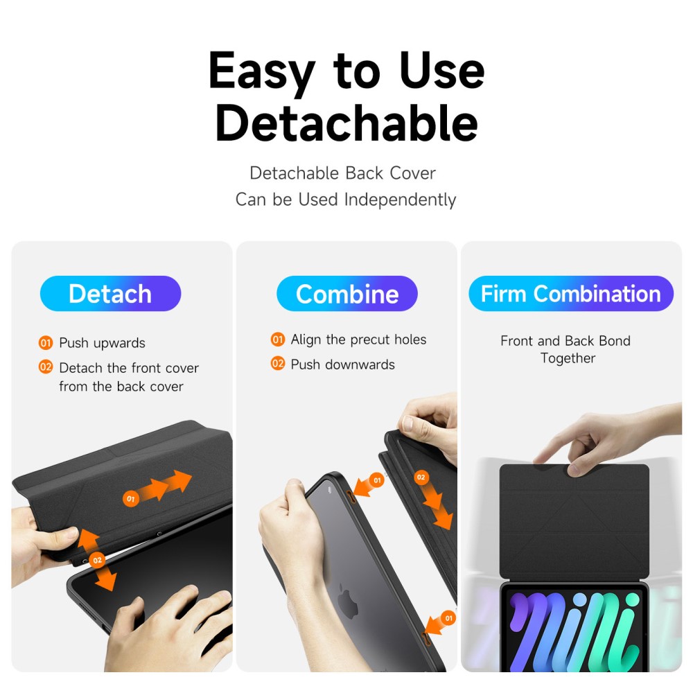 Θήκη Dux Ducis Magi Series Tri-Fold Flip Cover για iPad mini 8.3″ (2021/24) με πολλαπλές θέσεις στήριξης, ειδική θέση για πενάκι και διάφανη ενισχυμένη πλάτη σε χρώμα μαύρο