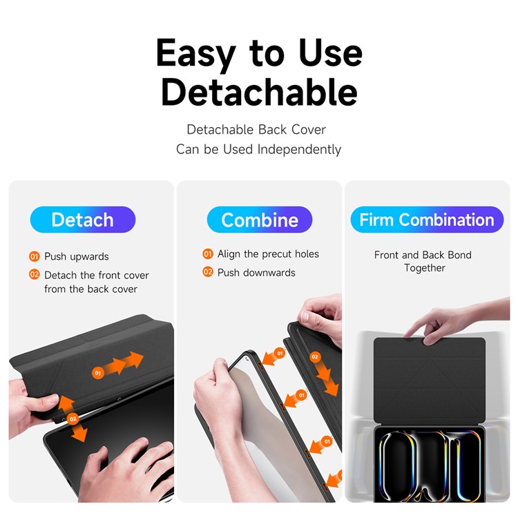 Θήκη iPad Pro (2024) 11″ DUX DUCIS Magi Series Tri-Fold με πολλαπλές θέσεις στήριξης, ειδική θέση για πενάκι και διάφανη ενισχυμένη πλάτη μαύρο