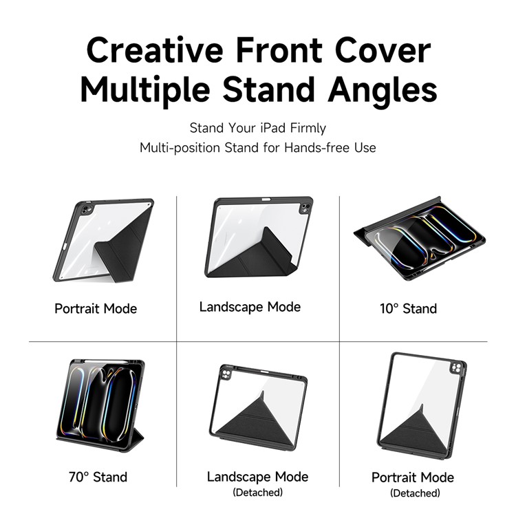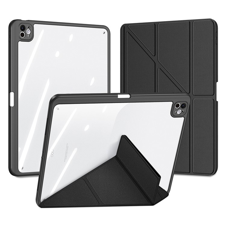 Θήκη iPad Pro (2024) 13″ DUX DUCIS Magi Series Tri-Fold με πολλαπλές θέσεις στήριξης, ειδική θέση για πενάκι και διάφανη ενισχυμένη πλάτη μαύρο