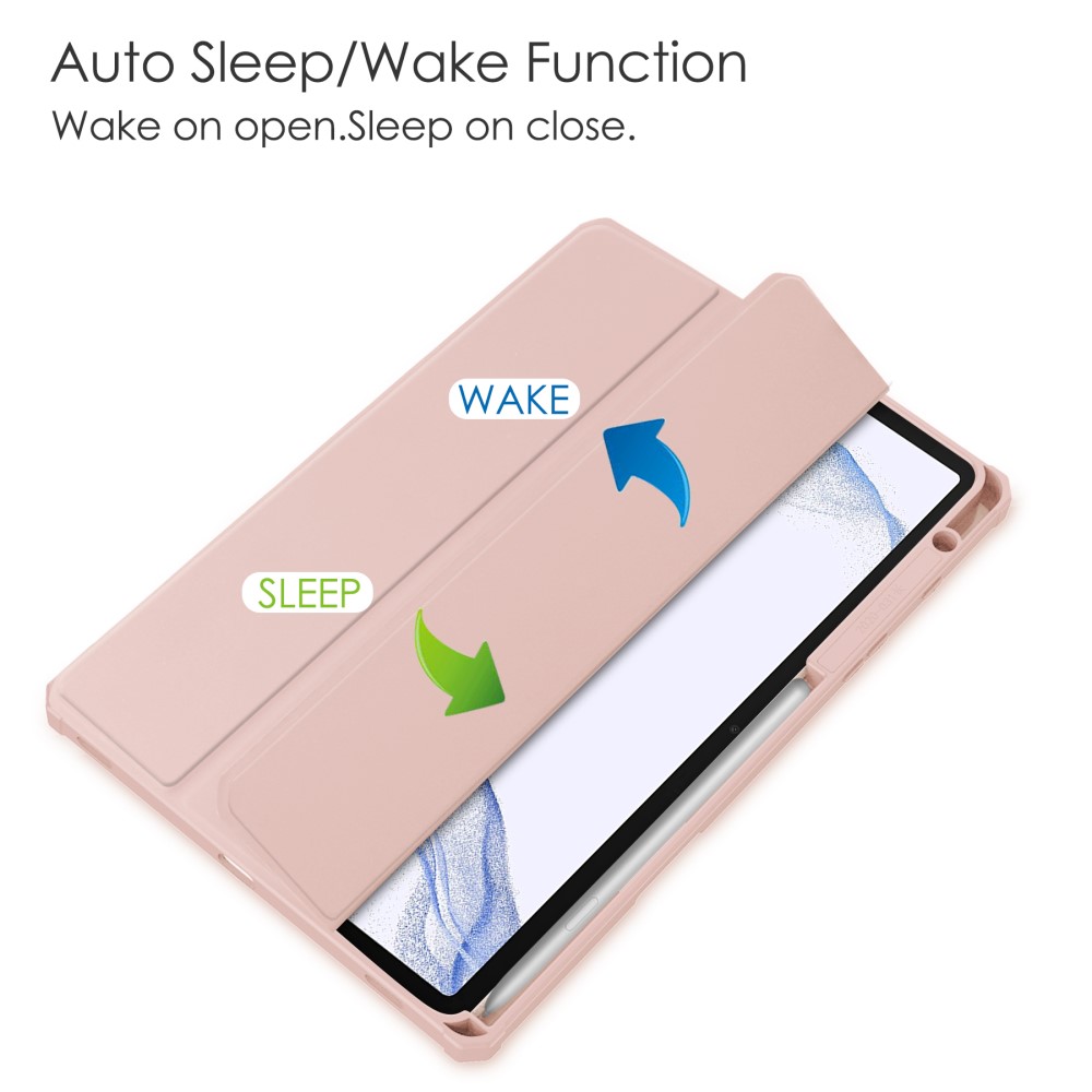 Θήκη Tri-Fold Flip Cover για Galaxy Tab S7/S8 11″ με ειδική θέση για πενάκι και διάφανη ενισχυμένη πλάτη σε χρώμα ροζ χρυσό