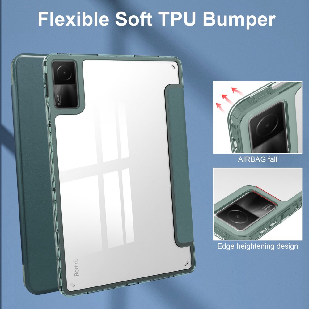 Θήκη Tri-Fold Flip Cover για Xiaomi Redmi Pad 10.61″ από TPU και διάφανη ενισχυμένη πλάτη σε χρώμα σκούρο πράσινο