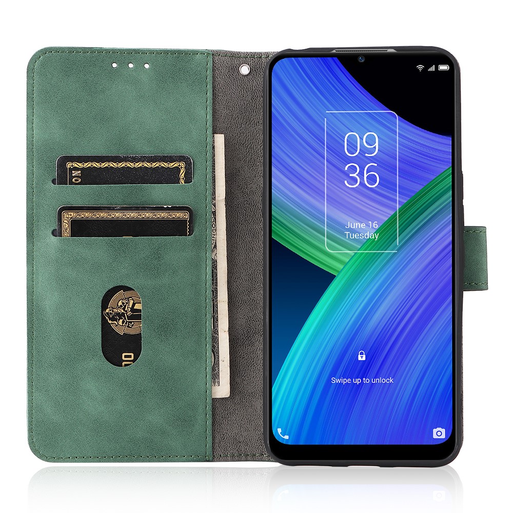 Θήκη TCL 20R 5G OEM Leather Skin touch Feeling v2 με βάση στήριξης, υποδοχές καρτών και μαγνητικό κούμπωμα πράσινο