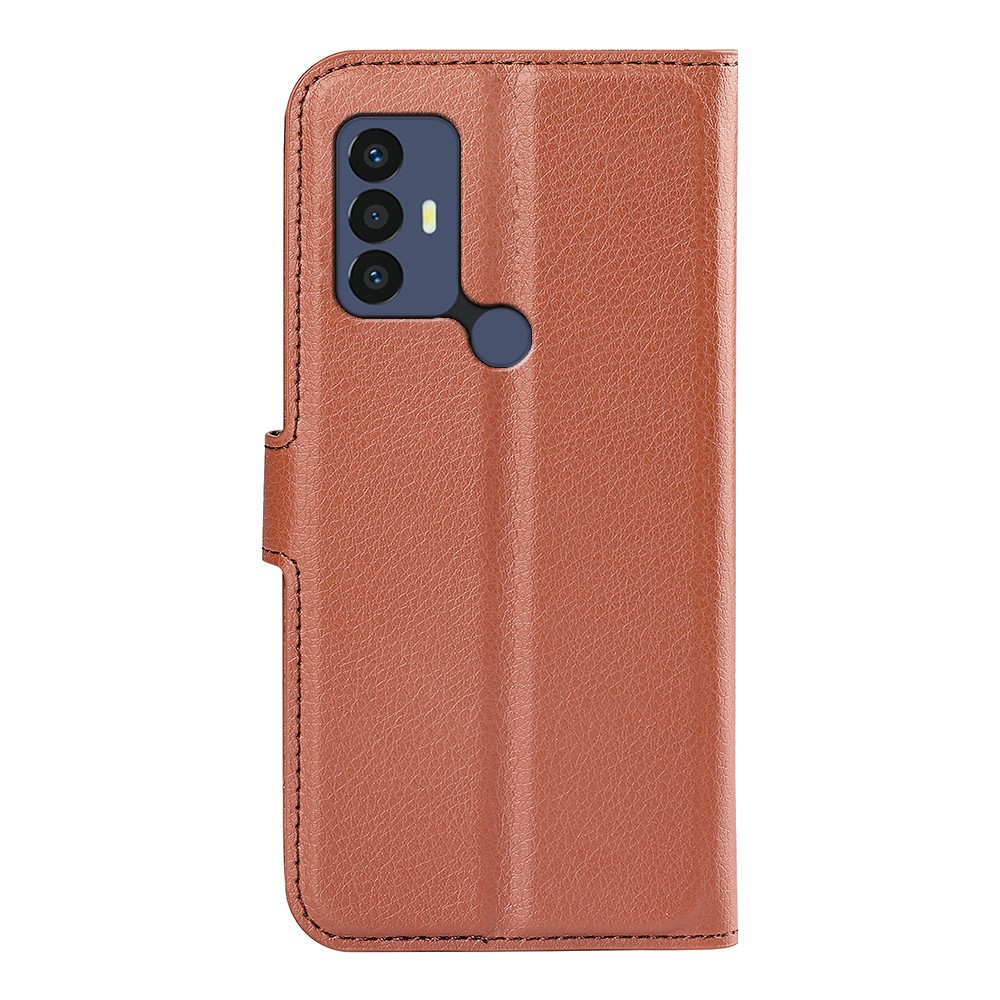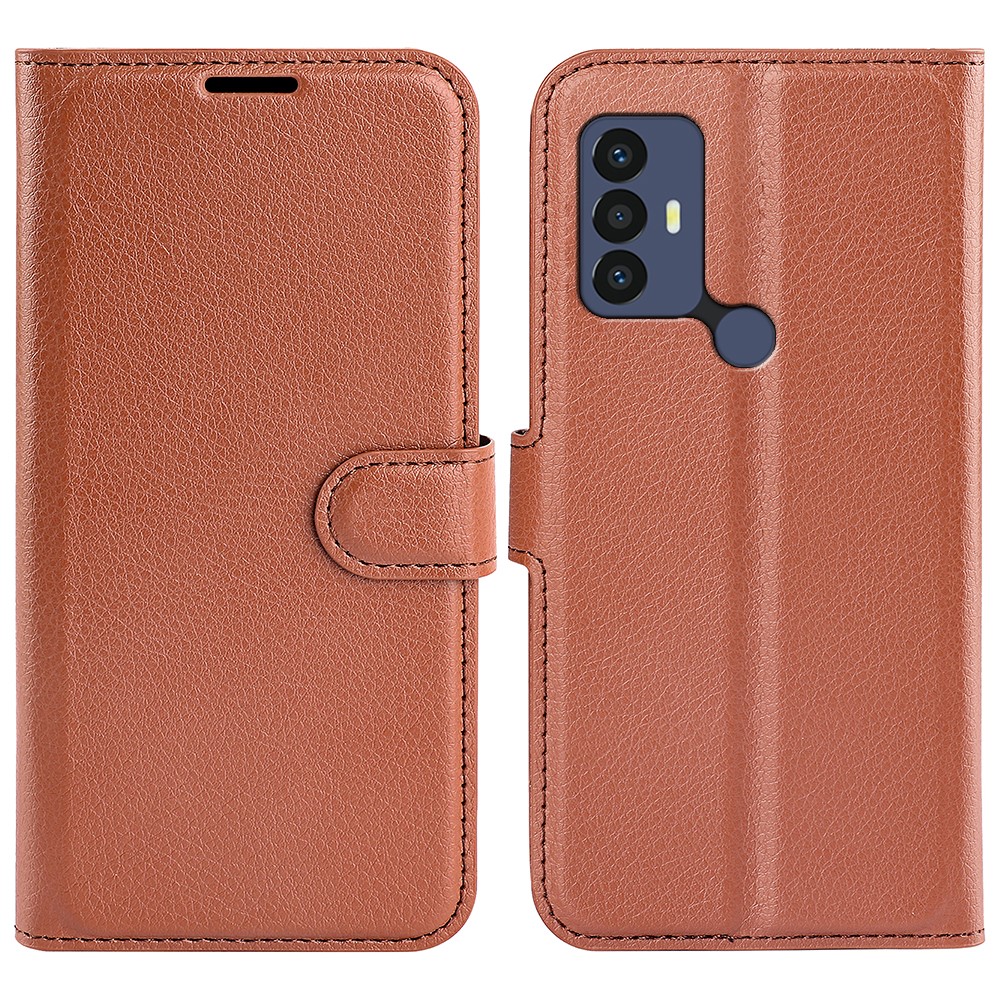 Θήκη TCL 30E / 306 / 30 SE OEM Litchi Skin Leather με βάση στήριξης, υποδοχές καρτών και μαγνητικό κούμπωμα καφέ