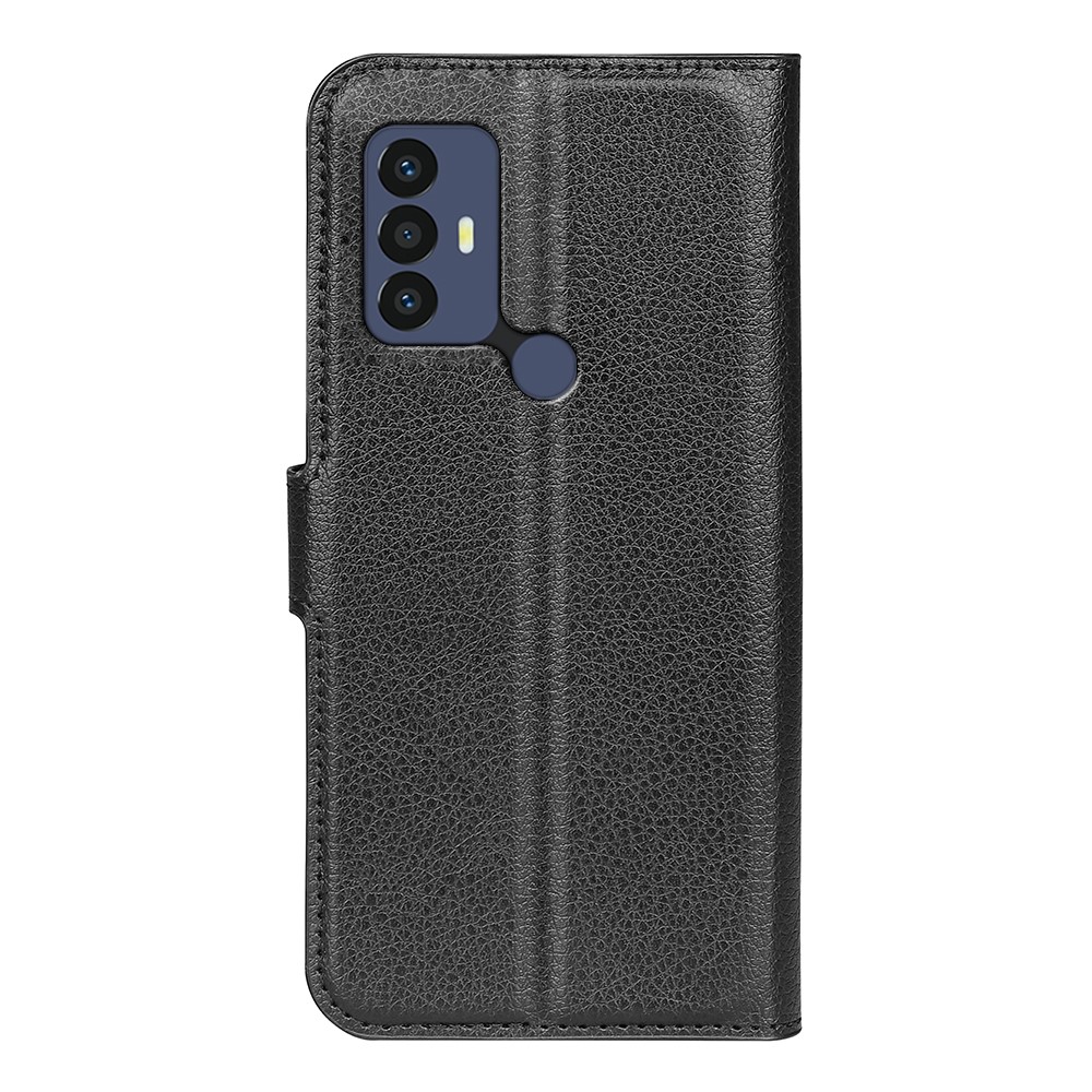 Θήκη TCL 30E / 306 / 30 SE OEM Litchi Skin Leather με βάση στήριξης, υποδοχές καρτών και μαγνητικό κούμπωμα μαύρο