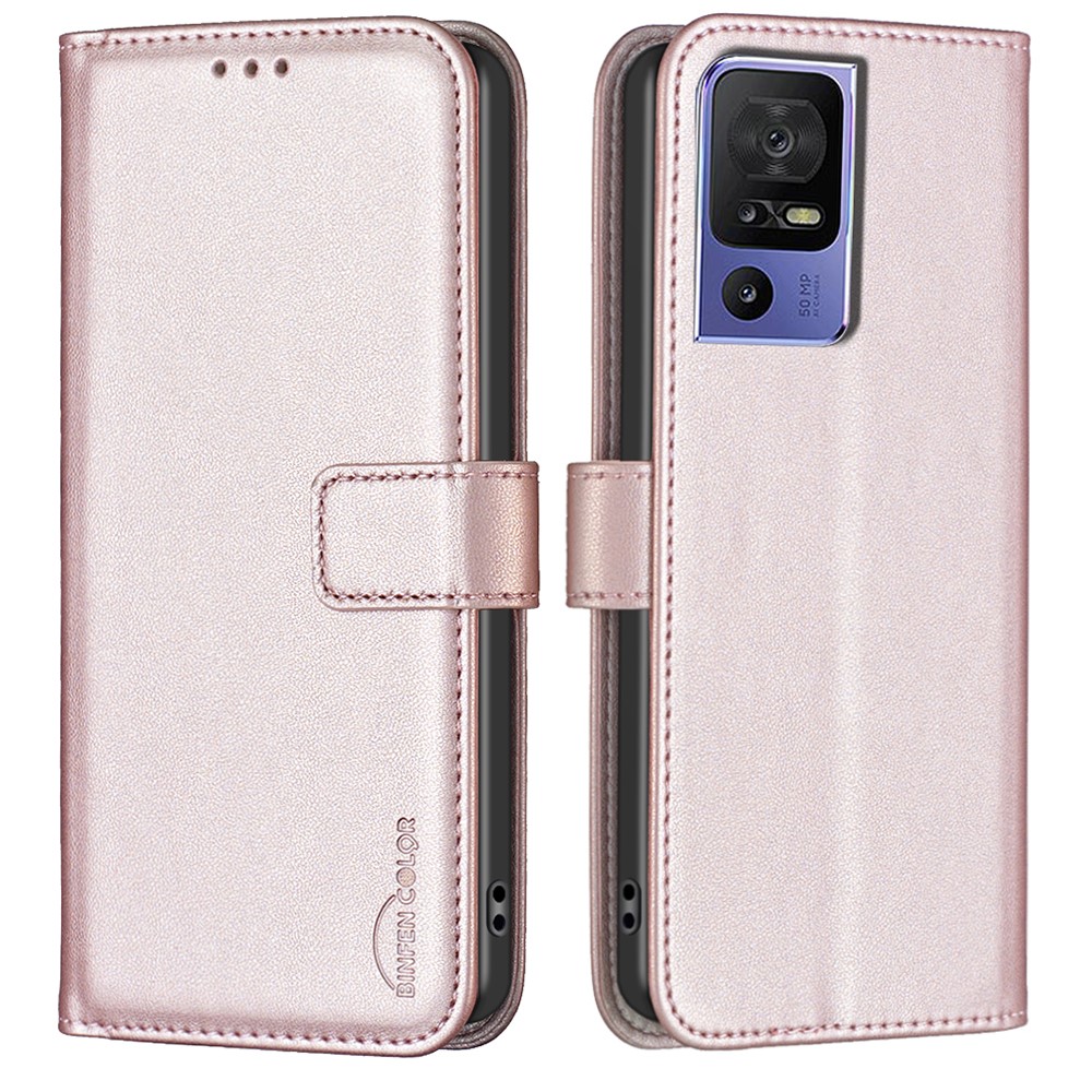 Θήκη TCL 40 SE BINFEN COLOR Leather Wallet Series 12 με βάση στήριξης, υποδοχές καρτών και μαγνητικό κούμπωμα – ροζ χρυσό