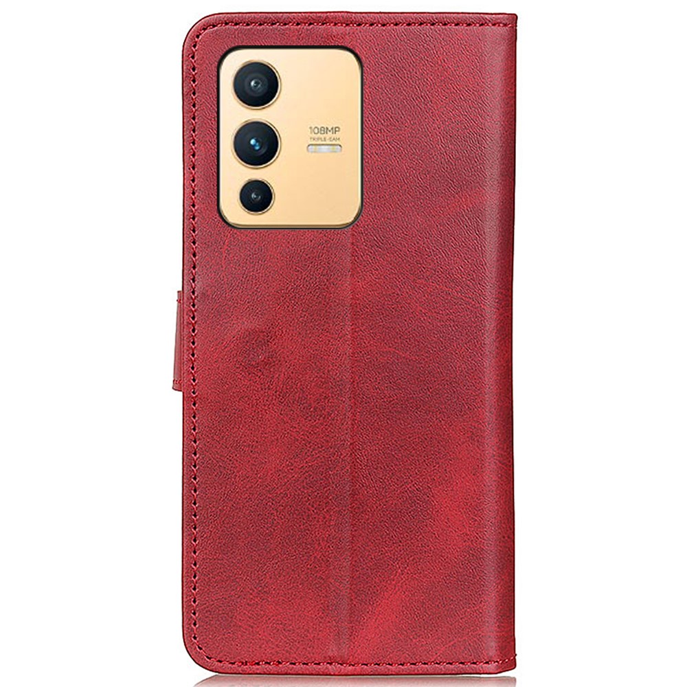 Θήκη Vivo V23 5G Mad Mask Litchi Skin v2 Leather με βάση στήριξης, υποδοχές καρτών και μαγνητικό κούμπωμα κόκκινο