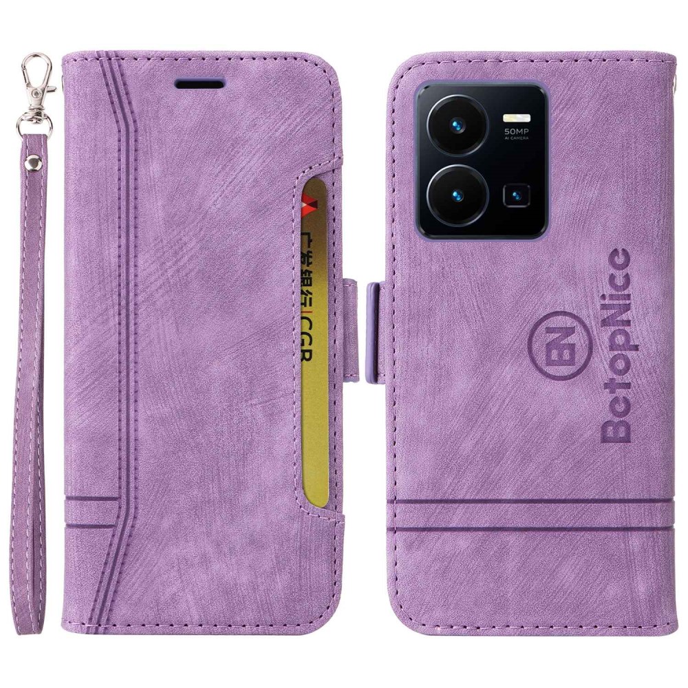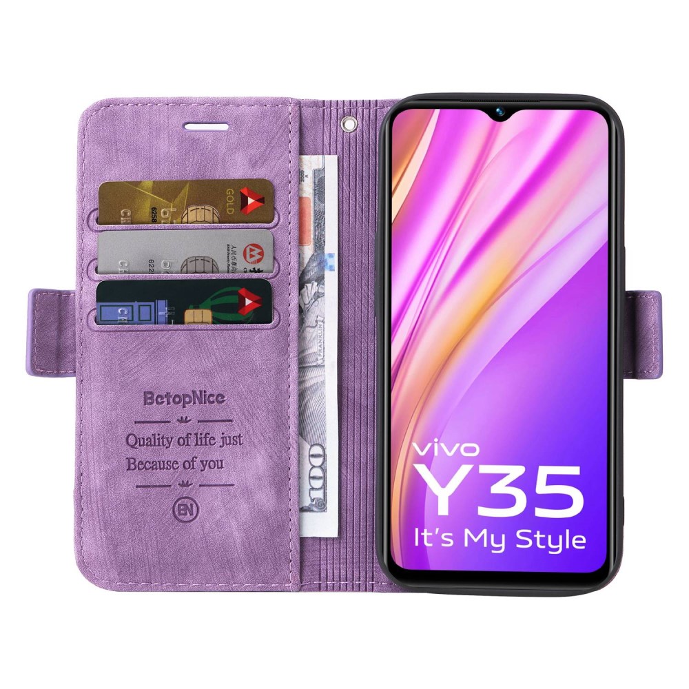 Θήκη Vivo Y22S / Υ35 BETOPNICE Leather Wallet Business Stitching Line με βάση στήριξης, υποδοχές καρτών και μαγνητικό κούμπωμα μωβ