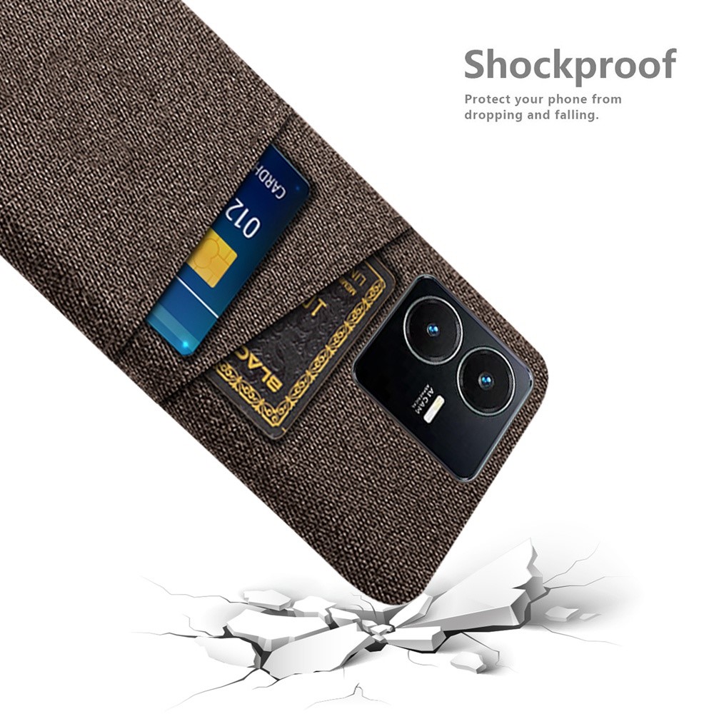 Θήκη Vivo Y22S / Υ35 OEM Πλάτη υφασμάτινη με υποδοχές καρτών και αντικραδασμικό Premium TPU καφέ