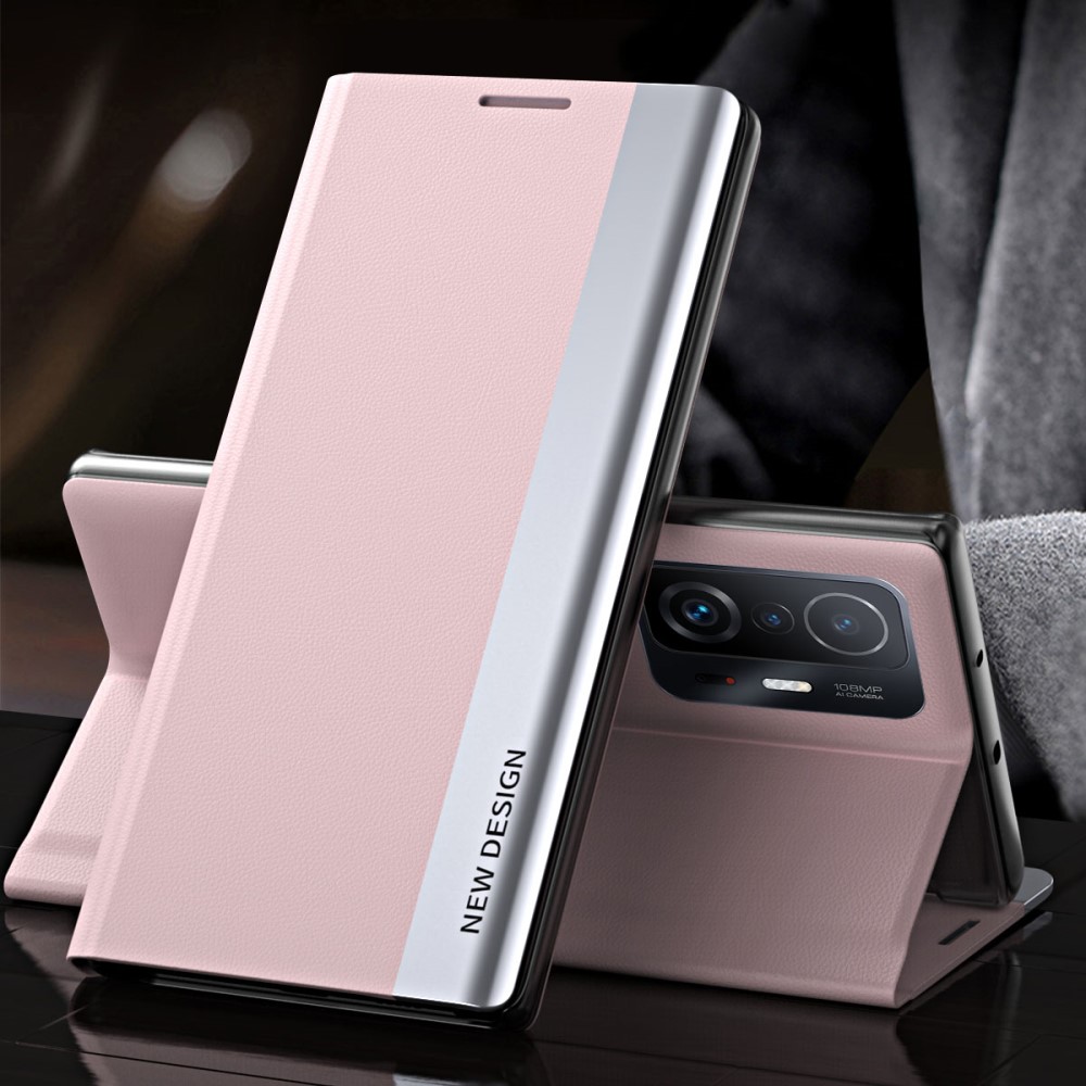 Θήκη Xiaomi 11T / 11T Pro New Design Leather Stand Cover από συνθετικό δέρμα ροζ