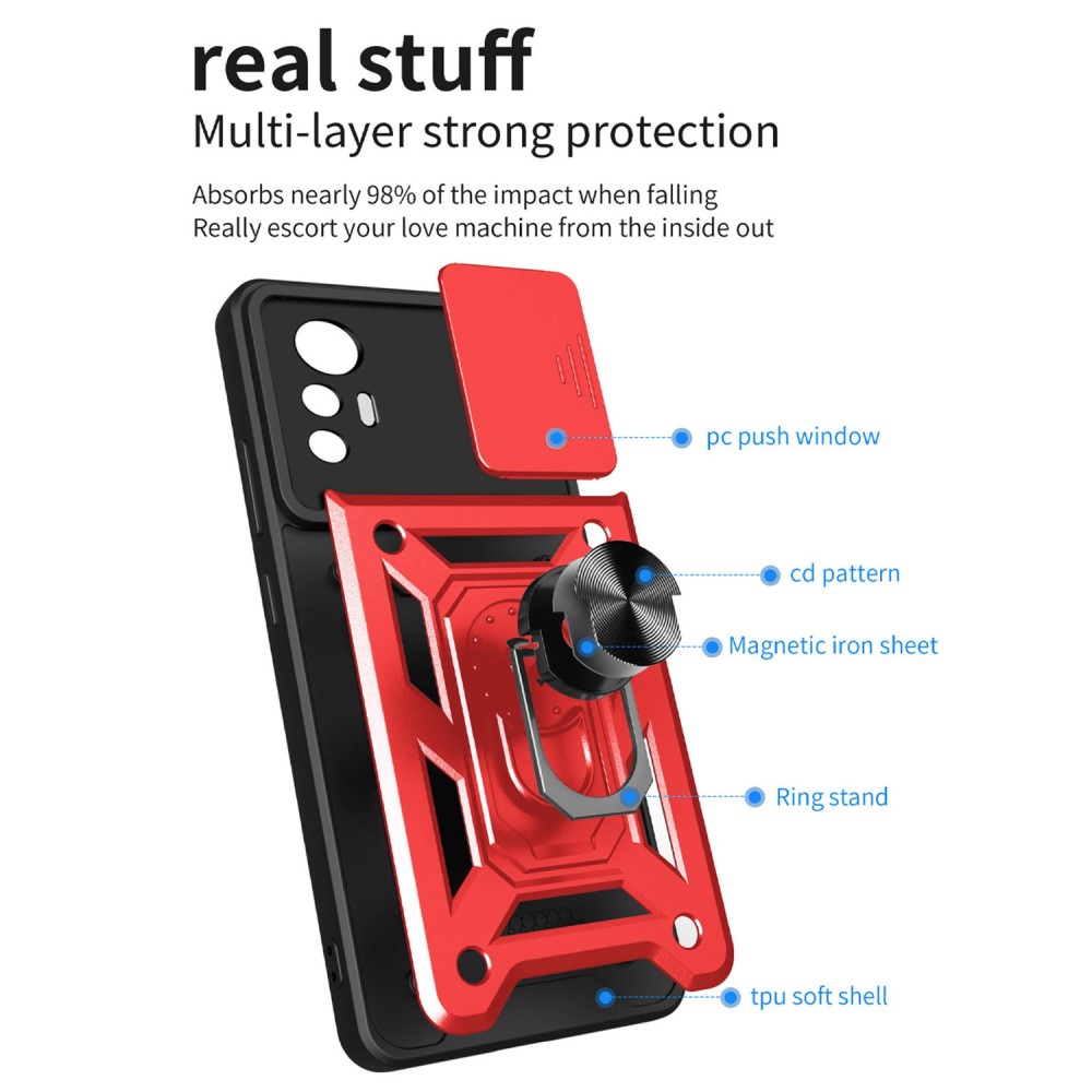 Θήκη Xiaomi 12 Lite 5G Mad Mask Camshield Armor Guard Πλάτη με προστασία για την κάμερα, Kickstand και Βάση στήριξης από σκλήρό Premium TPU κόκκινο
