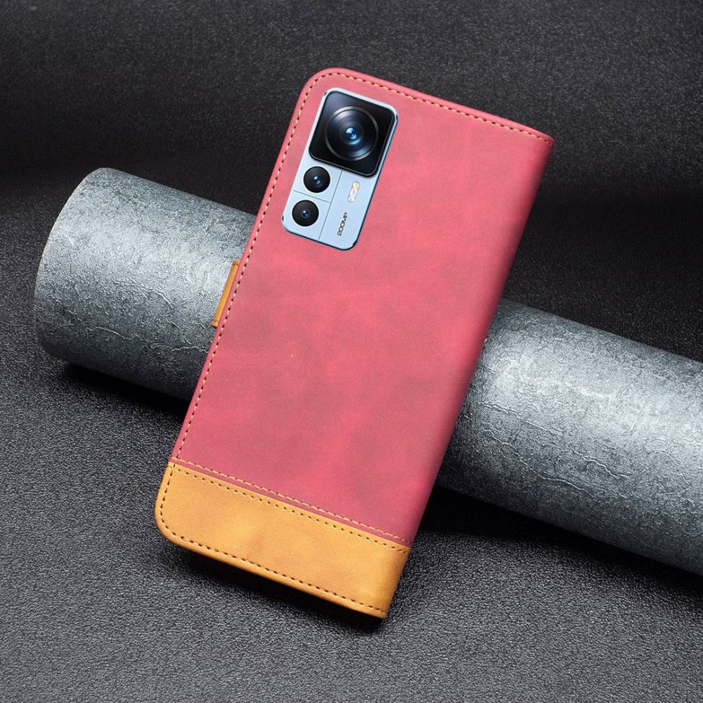Θήκη Xiaomi 12T 5G / 12T Pro 5G BINFEN COLOR Leather Wallet Double Stitching Lines v2 με βάση στήριξης, υποδοχές καρτών και μαγνητικό κούμπωμα κόκκινο