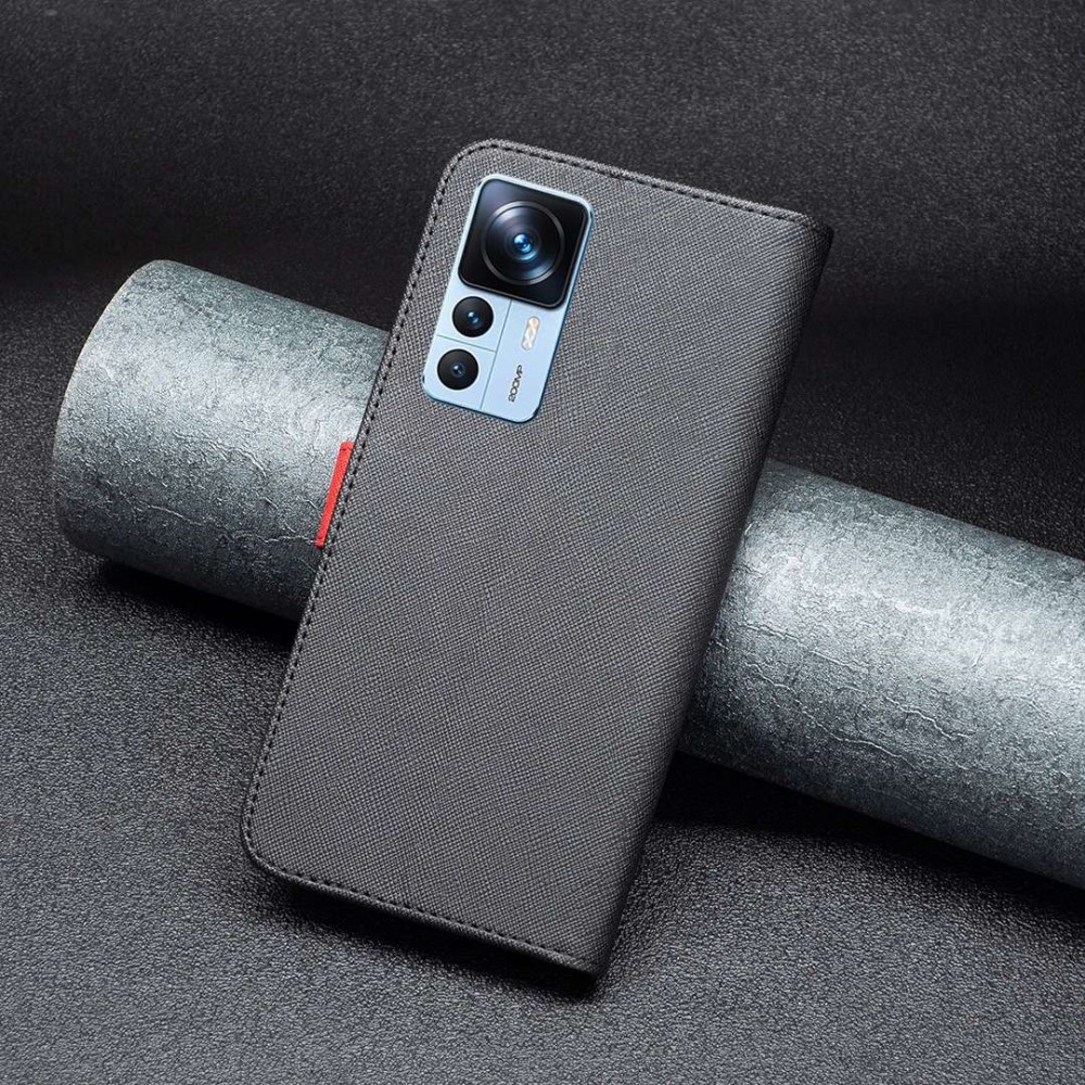 Θήκη Xiaomi 12T 5G / 12T Pro 5G BINFEN COLOR Leather Wallet Double Stitching Lines v3 με βάση στήριξης, υποδοχές καρτών και μαγνητικό κούμπωμα μαύρο