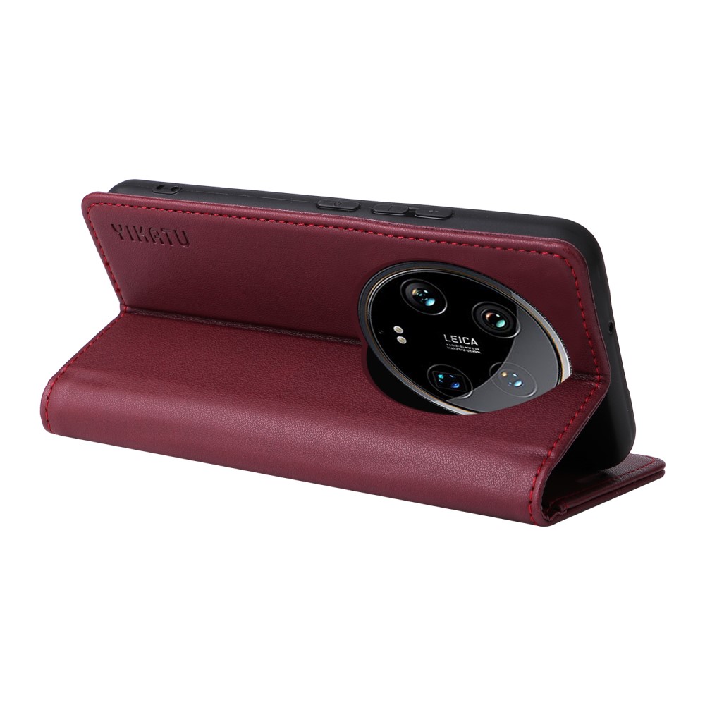 Θήκη Xiaomi 14 Ultra 5G YIKATU Folio Series με βάση στήριξης, υποδοχή καρτών και μαγνητικό κούμπωμα Flip Wallet από συνθετικό δέρμα και TPU κόκκινο σκούρο