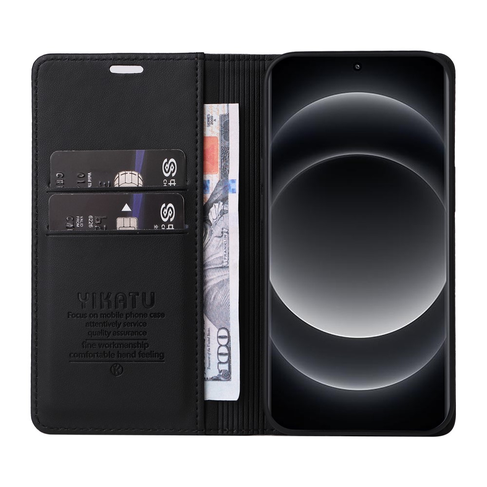 Θήκη Xiaomi 14 Ultra 5G YIKATU Folio Series με βάση στήριξης, υποδοχή καρτών και μαγνητικό κούμπωμα Flip Wallet από συνθετικό δέρμα και TPU μαύρο